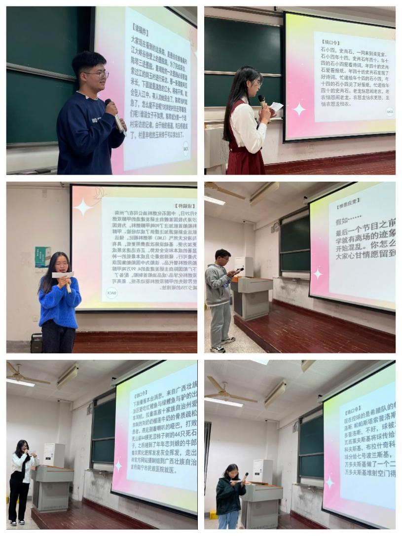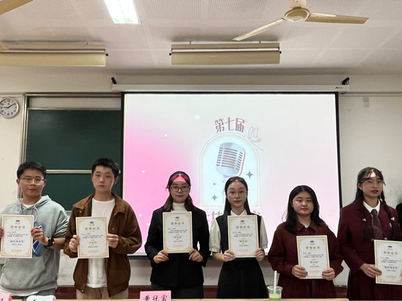 经过激烈角逐,社工2201班刘泽浩获得“金话筒”称号,法学2202班贾薪玉获得“银话筒”称号,社工2201班赖旻悦和法学2204班章诗菡获得“铜话筒”称号,社工2201班何煦中和法学2201班吴世强获得“最佳风采奖”。