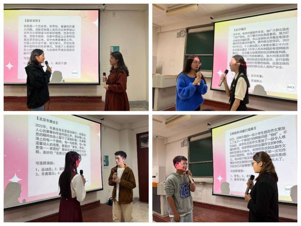 第一环节中,选手们紧紧围绕党的二十大,以及深入宣传和学习习近平总书记带领全党全国各族人民在实现中华民族伟大复兴征程上走过的非凡十年开展主题演讲,充分表达自己对青春成长以及大学生活的感悟和思考。第二环节中,12位选手顺利晋级。选手们从阅读稿件、情景应变和绕口令三类题目中抽签并展示。同学们出色的表现,不仅得到评委的高度认可,也引发了观众们的热烈掌声。决赛环节中,8位选手进行模拟访谈,以赛促学,选手们的语言表达能力和心理素质得到了充分的锻炼。