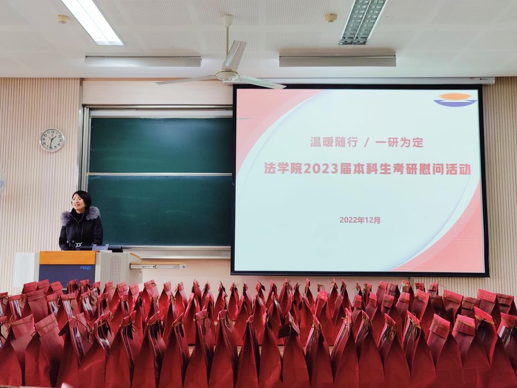 冬日温暖随行,迎考一研为定。在2023年全国硕士研究生考试来临之际,为鼓舞考研学生信心,舒缓心理压力,积极应对考试,永利23411集团于12月1日下午在第二教学楼开展“温暖随行,一研为定”2023届本科生考研慰问交流活动。永利23411集团领导给予高度重视,精心准备,学院副院长李俏、毕业班辅导员帕日旦木出席此次活动,代表永利23411集团对全体考研学子表达关心和慰问,为考研学子加油鼓劲。