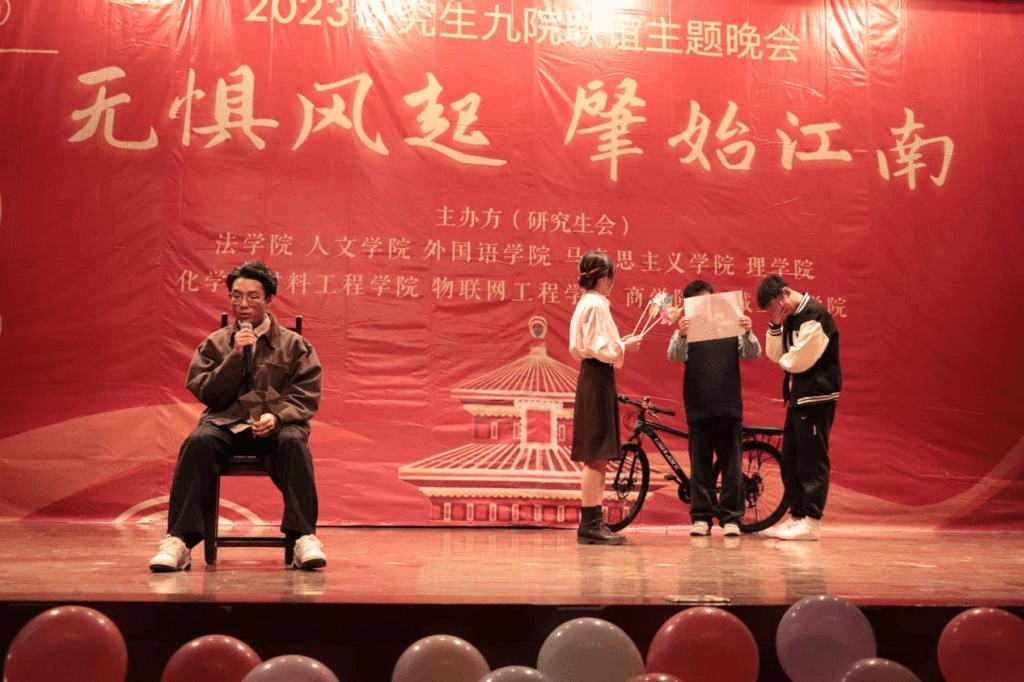 3月19日18:30,永利23411集团2023年研究生九院联谊主题晚会在南活报告厅举行。本场晚会由永利23411集团研究生会主办,化学与材料工程学院、马克思主义学院、商学院、物联网工程学院、外国语学院、人文学院、机械与工程学院、理学院研究生会协办,以“无惧风起,肇始江南”为主题,给研究生们带来了一场精彩震撼的视听盛宴。