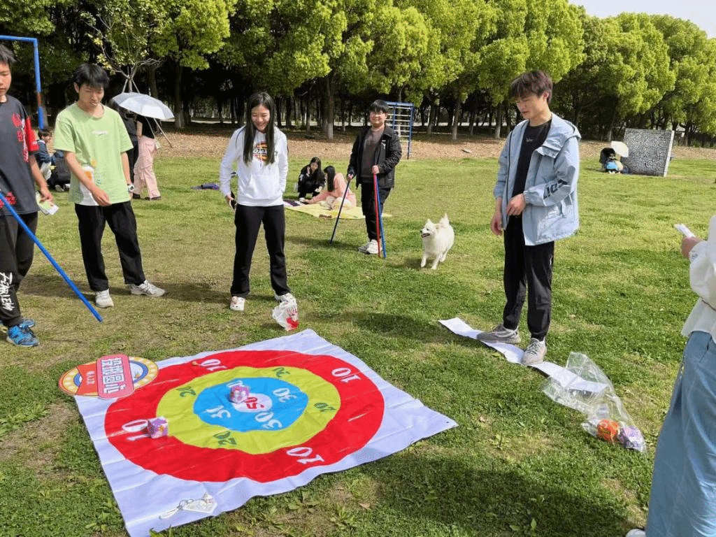 游园会于下午2点在大学生素质拓展中心正式开始。现场分布五个互动区域。在“放飞梦想,筝舞蓝天”区域,学生们手绘风筝,写下自己的愿望和目标,把梦想和目标送往蓝天;在“齐心协力,神笔马良”区域,学生们齐心协力,描绘自己心目中的美好未来,并以文字和图画形式展现出来;在“导向未来,投掷圆心”环节,学生们跃跃欲试,掌握扔沙包的技巧,互帮互助,互教互会,巧妙得分;“团队共赢,不倒森林”区域,学生们通力合作;“自由联想,一起OH卡”区域,学生们在游戏中发挥自己的智慧、勇气,增强了学生之间的沟通与合作意识。在活动结束后,学生们根据个人表现获得相应的星星,领取奖品。