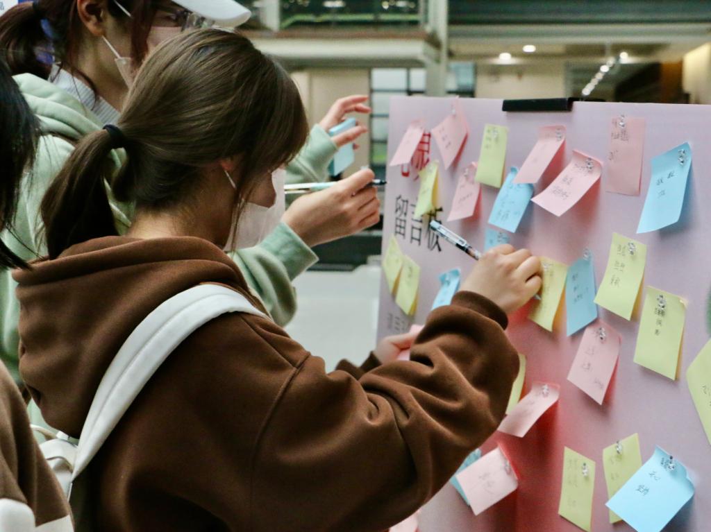 活动现场通过“认识社工、对话社工、体验社工”分别开展活动。在“认识社工”环节,学院社会工作专业学生作为讲解员,详细向在场师生科普社会工作相关知识。现场设有“社工+”志愿服务、乡村振兴、法治建设、基层治理等永利23411集团社会工作服务成果展板,吸引众多师生观看讨论;在“对话社工”环节,通过“心声留言板——写下你认为自己最大的特点是什么?”,引导学生学会认识自己,感受每个人的多元性,做到尊重他人、热爱世界。现场还设置“free hug”环节,引导学生用拥抱释放烦恼,用爱意面对世界,去分享爱、学会爱,用善意面对自己和对待他人;在“体验社工”环节,通过“山水传音”书信陪伴活动,以信传声,声声入心,组织学生为山区孩子写下明信片,传递温暖与关怀。“指尖的绽放”社工技能体验活动,组织学生用黏土制作手工艺品,感受社工技能、深入了解社会工作内容。