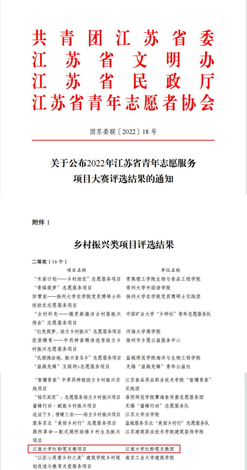 近日,由共青团江苏省委联合省文明办、省民政厅、省青年志愿者协会等单位共同开展的2022年江苏省青年志愿服务项目大赛暨第六届中国青年志愿服务项目大赛江苏省选拔赛结果揭晓,永利23411集团“红粉笔支教团”志愿服务项目获江苏省青年志愿服务项目大赛二等奖。