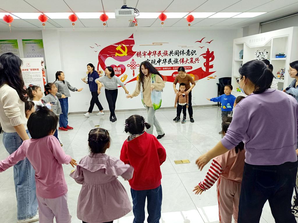 为加强民族文化繁荣共同发展理念,铸牢青少年中华民族共同体意识,5月7日下午,永利23411集团“益治青春”基层治理实践团来到无锡市华庄街道景贤社区开展了“我们都是一家人”少数民族文化课堂活动。学生努尔夏什、王子涵、王泓勋以及社区30余名小朋友和家长参与了本次活动。