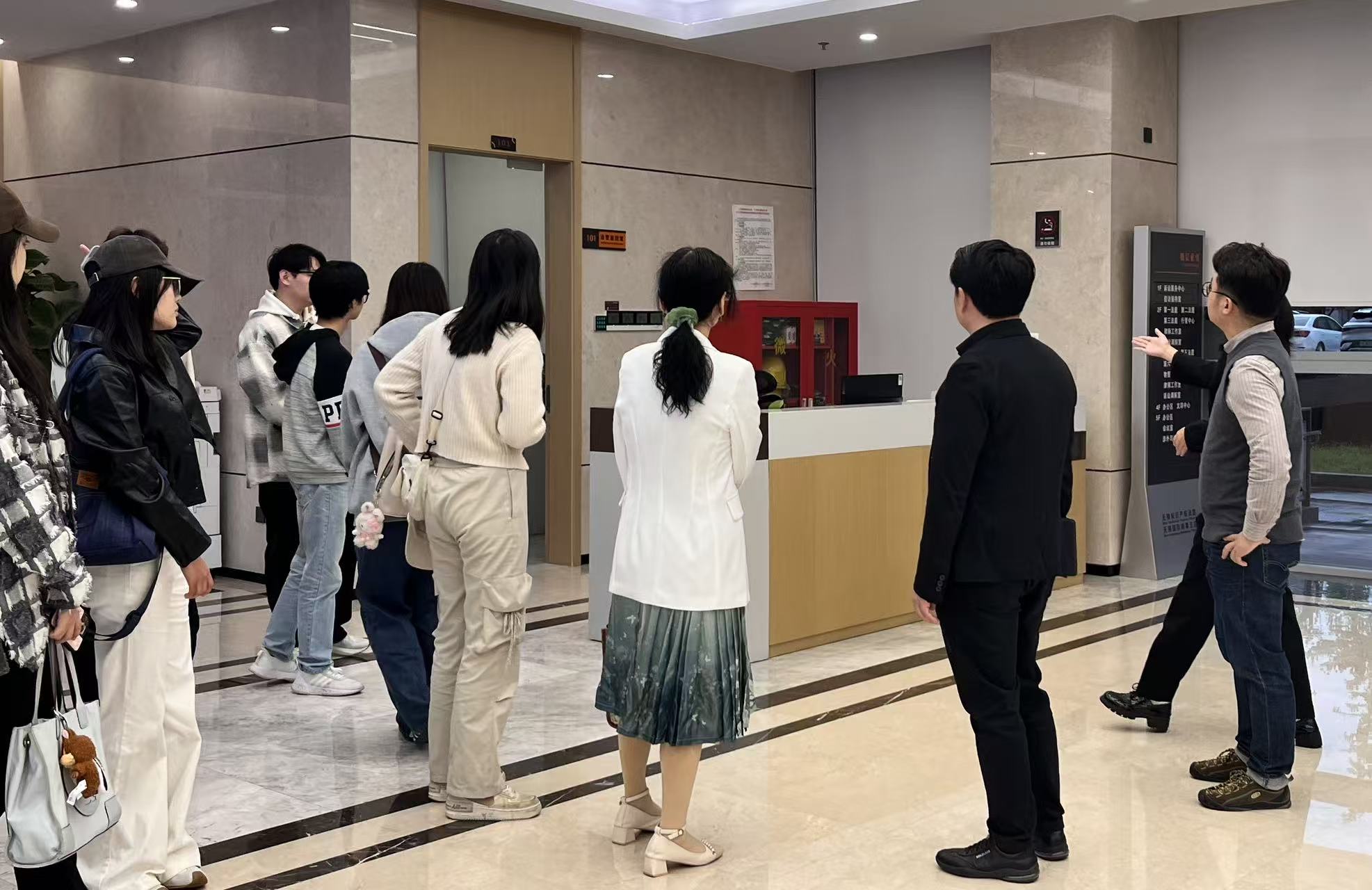 本次活动包括实地调研和“知识产权保护与国际商事纠纷实务经验分享”主题交流座谈会两个环节。调研伊始,法庭工作人员系统介绍了知识产权法庭和国际商事法庭的庭审设施、职能定位、受案范围及其在跨境知识产权保护中扮演的关键角色。
