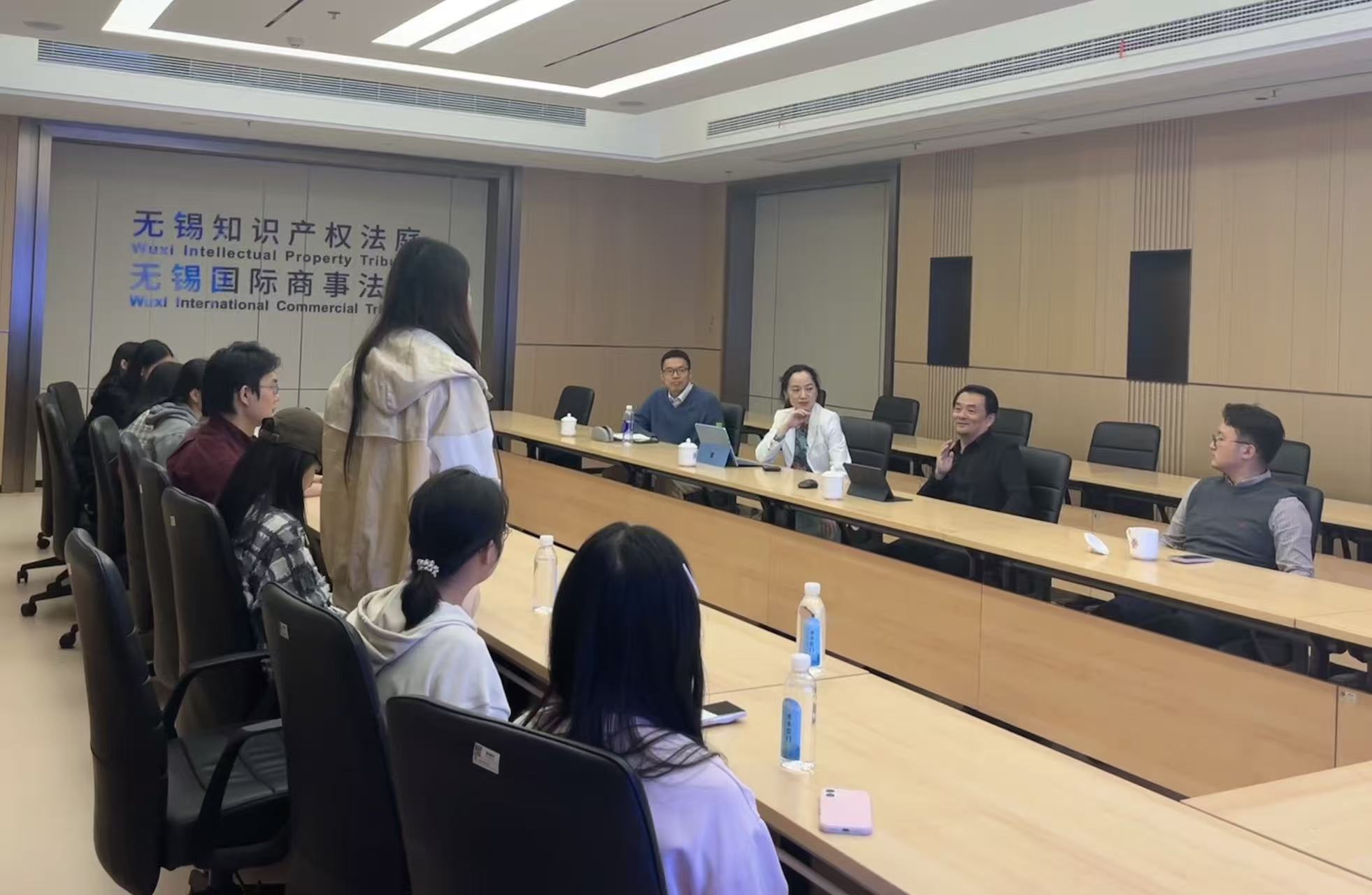 在座谈交流环节,团队成员围绕“数据与技术秘密保护”、“审判挑战与价值判断”、“庭审语言与证据审查”、“软件侵权认定”等前沿议题,与资深法官展开了深入探讨。现场问答环节气氛热烈,展现了青年学子扎实的专业基础和敏锐的问题意识。在知识产权保护板块,陆庭长通过“假人模型数据技术秘密纠纷案”、“商标与企业名称冲突案”等一系列无锡法院审理的典型实例,生动阐述了“最严格保护”司法理念的落地。针对当前的技术前沿挑战,陆庭长还就数据资产保护、软件侵权认定中的“实质性相似”标准、反向工程的合法路径等热点问题进行了深度解读。陆庭长特别指出,面对新型、疑难案件,法官不仅要做法律技术的运用者,更要做激励创新与维护公共利益的价值衡量者。最后,陆庭长鼓励大家成为既懂法律又懂技术的复合型人才,积极投身于知识产权强国建设的时代浪潮中。