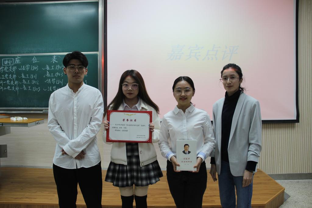最终,社工1902班荣获第一名,法学1803班和社工1903班获得第二名,研二党支部、法学1902班、社工1901班获得第三名,研一党支部、法学1801、法学1802等三个学生党支部和7个班级获得优秀奖。帕日旦木分别为获奖班级颁发奖状并合影留念。