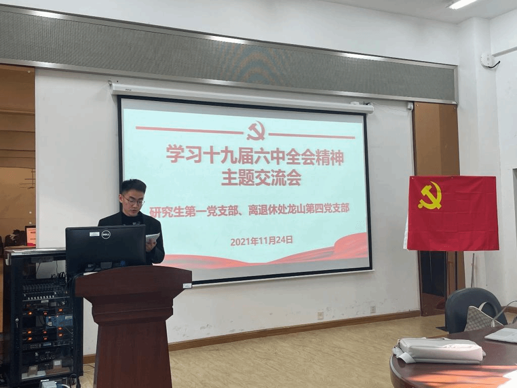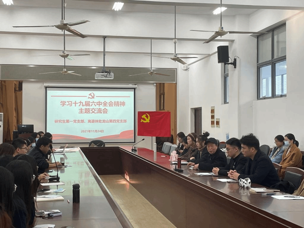 为深入学习贯彻党的十九届六中全会精神,将相关理论入脑、入心,2021年11月24日下午,永利23411集团研究生第一党支部在永利23411集团B105召开学习十九届六中全会精神主题交流会。离退休处龙山第四党支部书记王永南出席会议,会议由研究生第一党支部书记陈伟蔚主持。