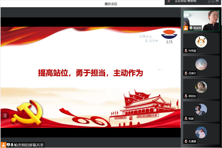 张慧琪进行“提高站位,勇于担当,主动作为”主题讲话,肯定各学生支部在支部建设、运行以及党员发展上发挥的重要作用,同时也指出了当前支部工作仍存在的支部工作流程不规范、支部工作台账不完整等问题。她指出支部委员队伍是党建“最后一公里”的有力保障,要自觉加强政治理论素养和工作能力,不断提高政治站位、增强政治能力;要落实新时代党的建设总要求,切实做好发展党员,落实“三会一课”制度等工作,履行管党治党责任;要紧抓党建工作着力点,推进“对标争先”和“七个有力”工作要求,不断提升党建工作质量;要切实发挥模范带头作用,在学生群体中起到带动、引导、帮扶作用。