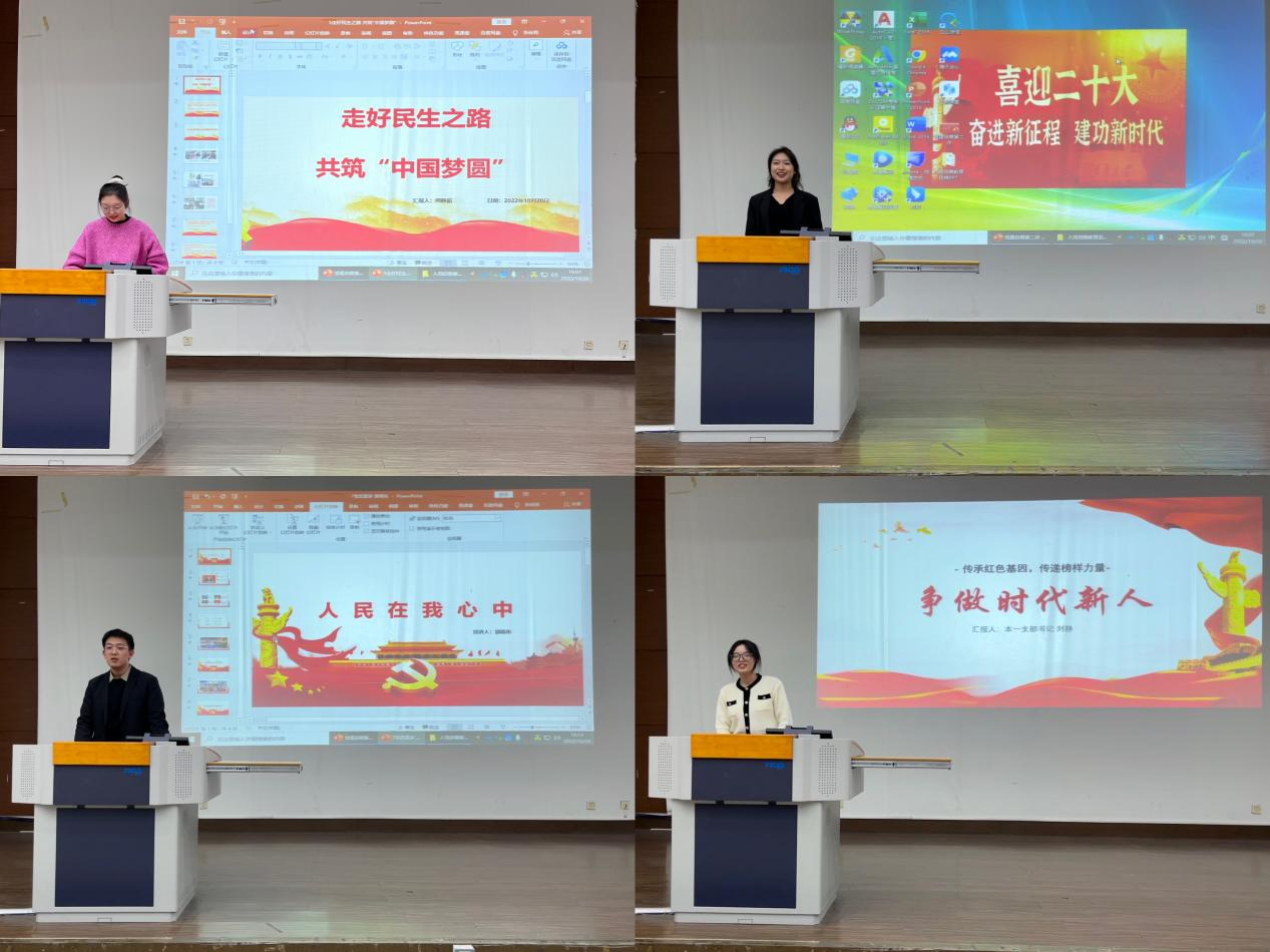 孙隽涵从雷锋的事迹和精神阐述了个人和集体的关系,并结合自己参加学院普法宣传工作的实践经历,认为一名学生党员应勇于挑战,迎难而上,在实践中磨砺自我。孟珺逸通过梳理党的百年历史,认为党的初心是“为中国人民谋幸福,为中华民族谋复兴”,而自己的初心是“见贤思齐、砥砺前行”,并结合自己考研、科研、学生工作的经历鼓励新生们要努力拼搏,追求更好的自己。周一鸣分享了服役于解放军94826部队的经历,在部队中,他深受优秀党员先锋模范精神的影响,明确了自己的初心和使命,坚定了要成为一名共产党员的决心。吴欣禹结合自己在江苏省连云港市人民检察院的实习经历,深刻认识到作为一名法律人要“以坚持真理的态度对待真理,坚守理想的态度呵护理想”,在实际行动中践行社会主义法治精神内涵。周静茹认为青年党员应发挥先锋模范作用,她关注到老年人在就医时不会使用健康码等现实民生问题,主动担当,深入县医院、社区诊所,在一次次志愿活动中积极践行为人民服务的誓言。俞沁元以“传承红色基因”为切入点,认为青年党员要“学业在勤,慎思笃行,众行致远,疑而屡破”。郭雨东结合自己的党史学习经历,深入解读党和人民的关系,认为共产党员要时刻把人民放在心中,为人民服务,从小事做起,从身边做起。刘静提出“争做什么样的时代新人?”,这一问题引发同学们的思考,她结合钟南山、黄文秀等优秀共产党员的事迹,并回顾了自己的入党历程,认为同学们要争做心怀“国之大者”的时代新人。