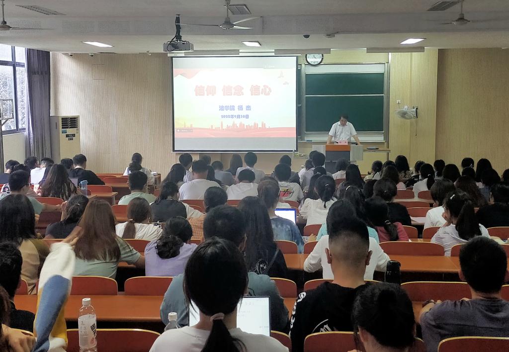 为积极引导2022级新生坚定理想信念,端正入党动机,帮助扣好人生的“第一粒扣子”,9月30日下午,永利23411集团开展新生入党启蒙教育,院党委书记杨杰为同学们带来“信仰、信念、信心”主题党课,全体新生参加了本次活动。