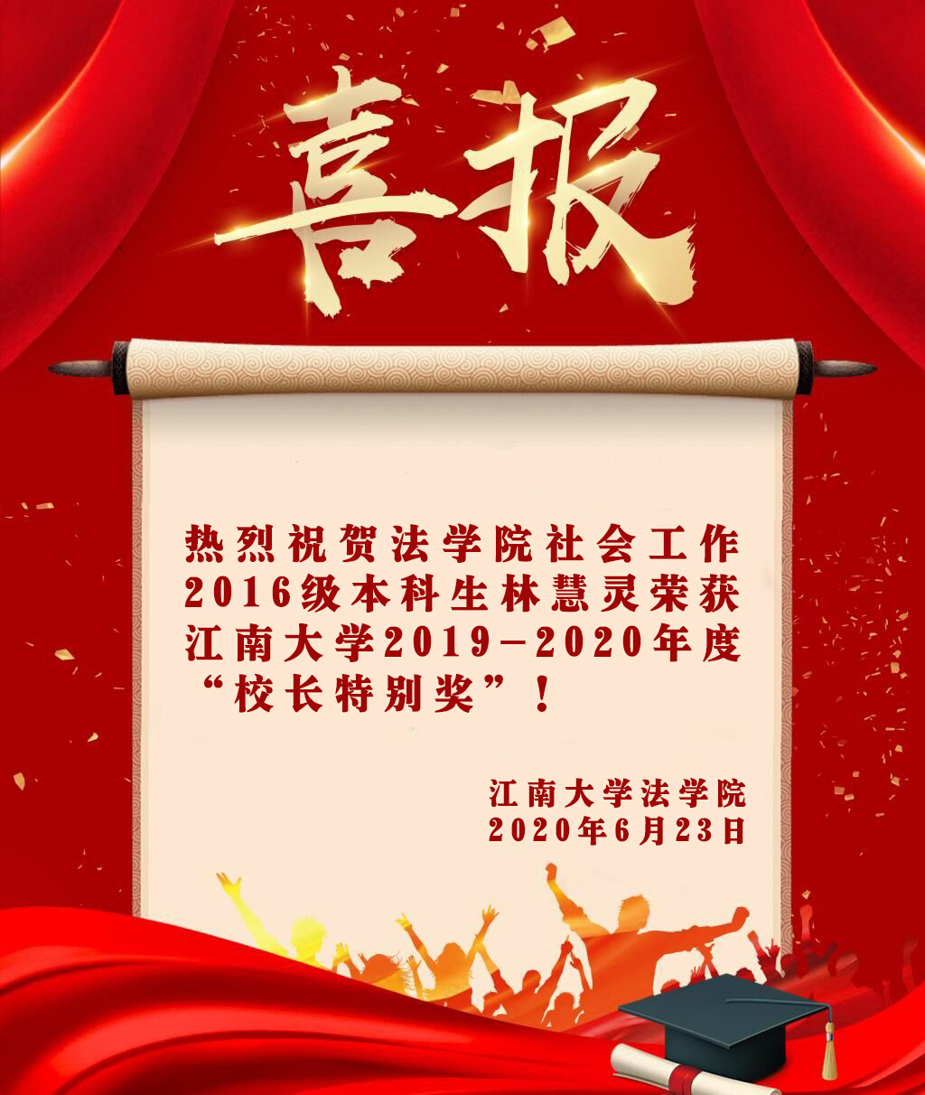 喜报:本科生林慧灵荣获永利23411集团2019-2020学年“校长特别奖”