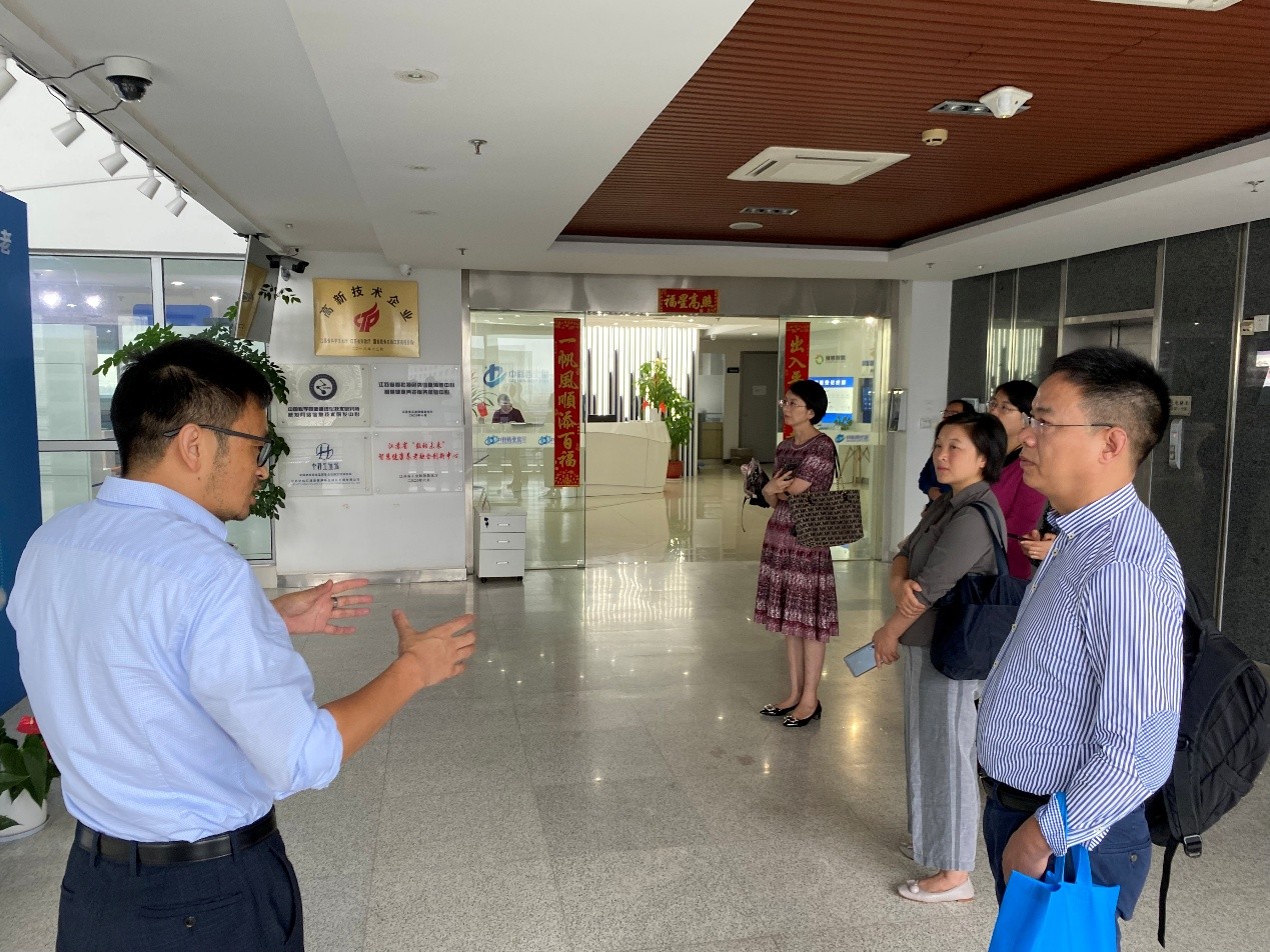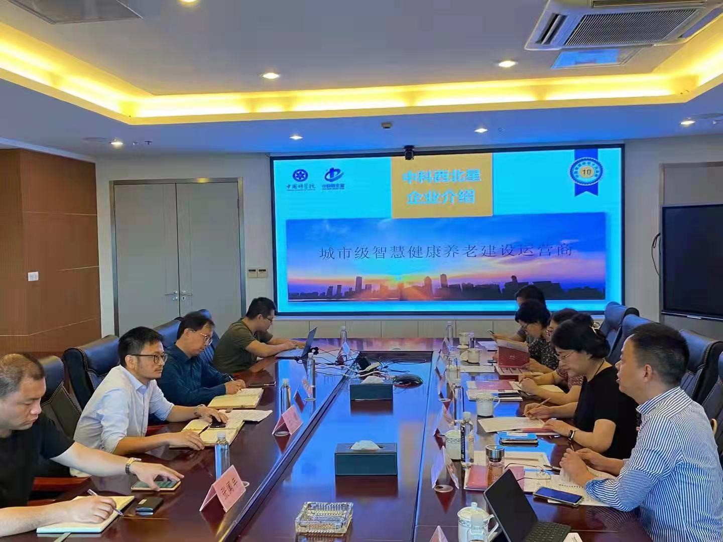 江苏中科西北星信息科技有限公司总经理王蒙、副总经理唐新余、总经理助理张阗年、陈光博士等热情接待,并就智慧康养技术在机构、社区、居家等场景应用以及大数据分析等方面进行了讲解展示,包括运营服务数据中心、社区养老系统及智能终端、居家养老服务系统及调度中心、机构养老系统及智能看护预警中心、智能护理服务系统智能终端、健康管理中心、环境安全检测及预警中心、在线医养融合健康服务、远程可视化陪护及系列物联网技术应用等。