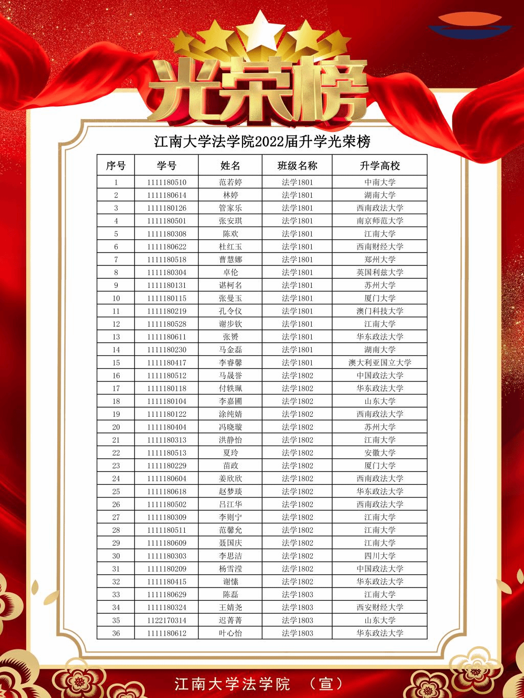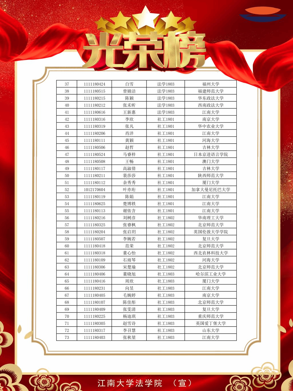 永利23411集团2022届本科毕业生考研取得可喜成绩,共73名毕业生升学至中国政法大学、复旦大学、南京大学、厦门大学、英国利兹大学、英国爱丁堡大学、澳大利亚国立大学等国内外知名高校。