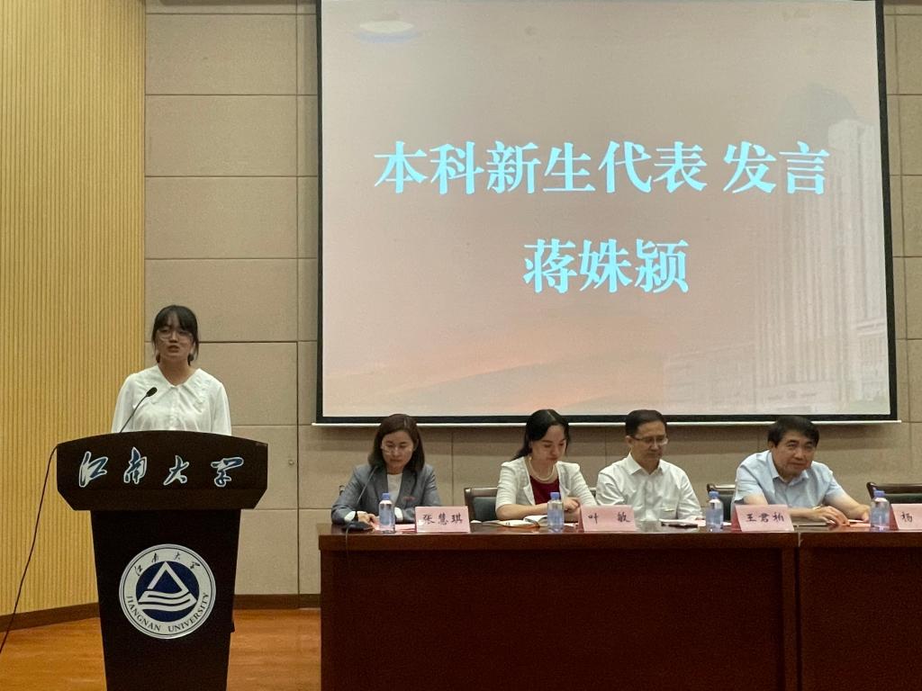 本科新生代表蒋姝颍发言