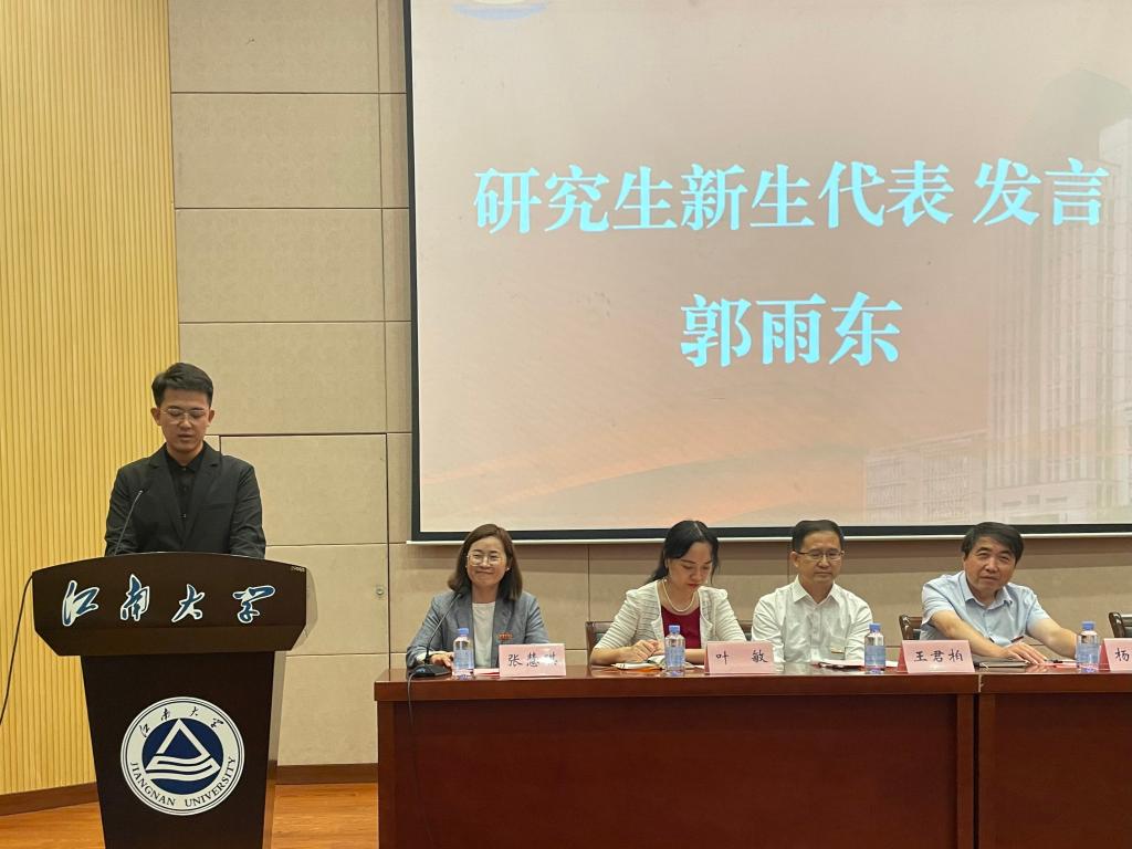 研究生新生代表郭雨东结合自己求学经历,坚定以昂扬的斗志和奋进的姿态迎接在永利23411集团中的生活,树立以天下为己任的家国情怀,为社会贡献自己的力量。