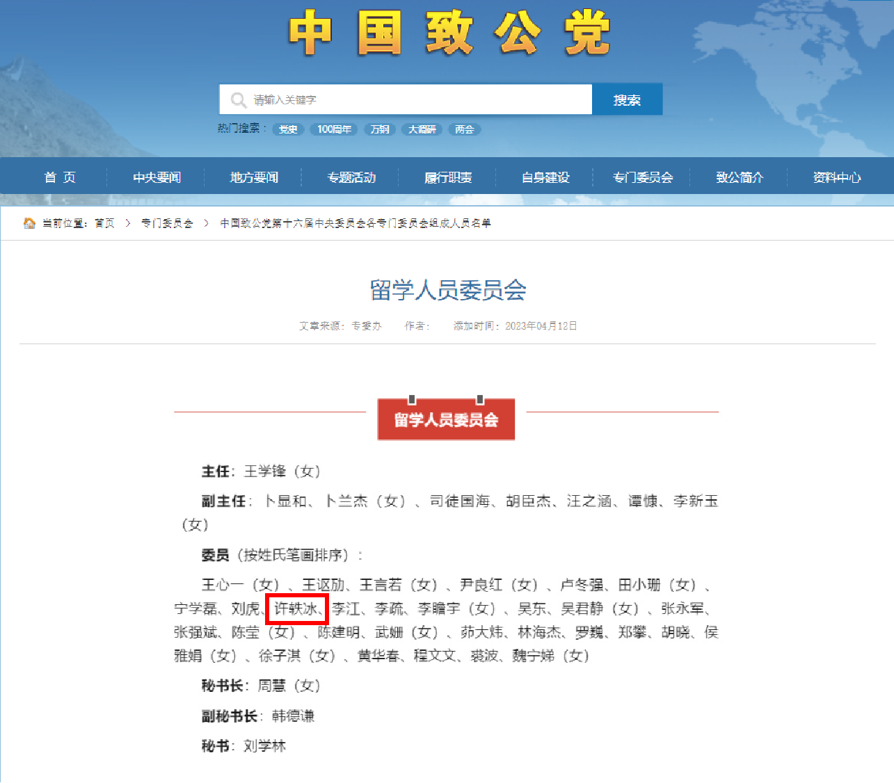 近日,经中国致公党第十六届中央委员会第五次主席办公会议通过,许轶冰当选中国致公党留学人员委员会委员。