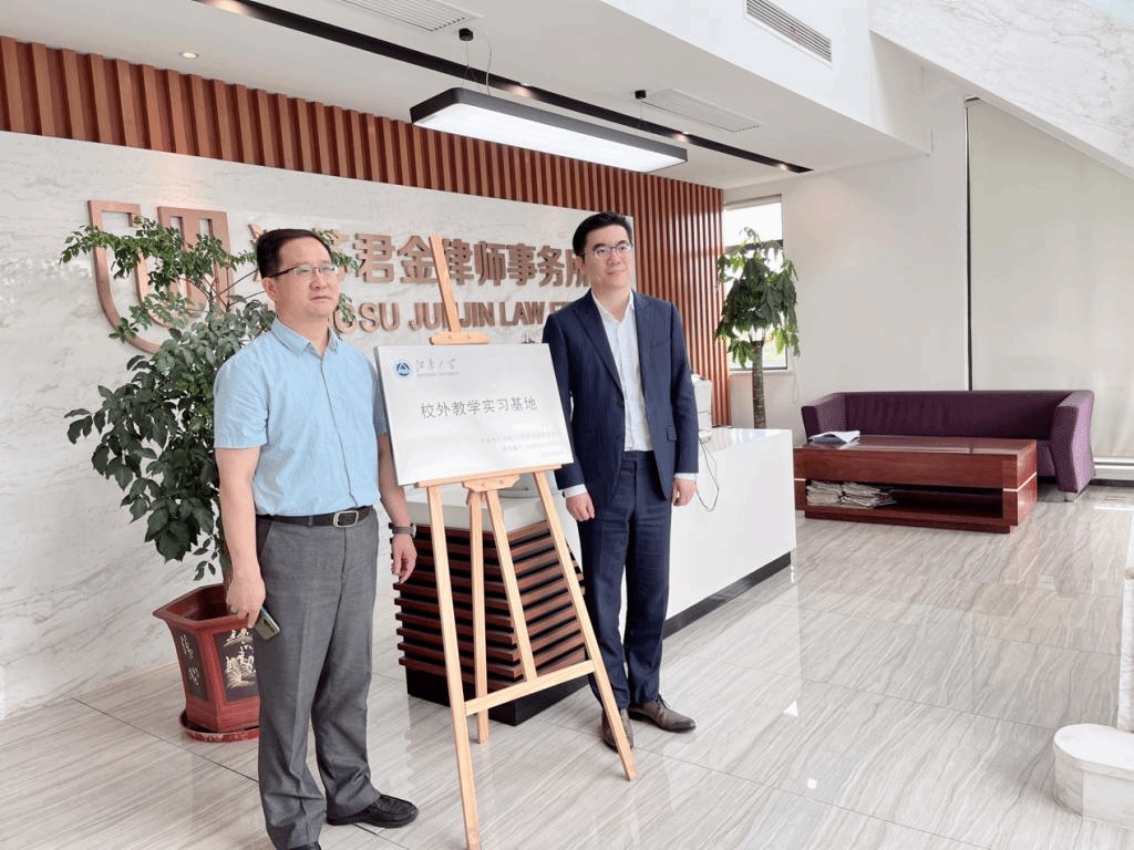 为深入学习贯彻习近平新时代中国特色社会主义思想主题教育,进一步深化校地合作,5月26日上午,永利23411集团院长王君柏率副院长叶敏、任卓冉赴江苏君金律师事务所开展教学实习与科研合作工作,并为江苏君金律师事务所成为永利23411集团校外教学实习基地举行挂牌仪式。