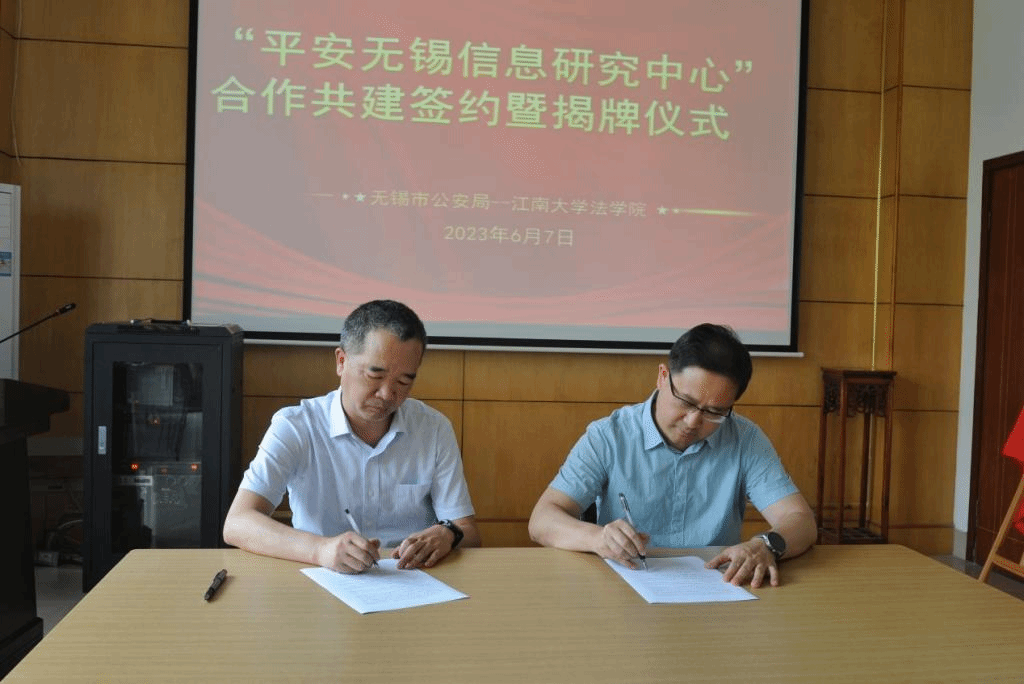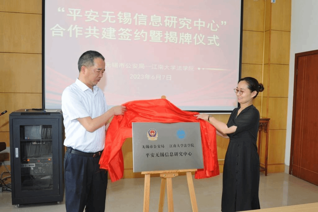 为进一步深入学习贯彻习近平新时代中国特色社会主义思想,落实党的二十大精神,协同地方打造平安无锡、提升公安机关执法公信力,促进法治无锡建设呈现良好态势,6月7日上午,永利23411集团与无锡市公安局举行“平安无锡信息研究中心”合作共建签约暨揭牌仪式。无锡市公安局党委委员黄建军,永利23411集团党委书记陆敏芝,院长王君柏,副院长叶敏、法律系主任梅锦,社会学系支部书记王沛沛,社会学系主任汪冬冬等参加了本次活动。