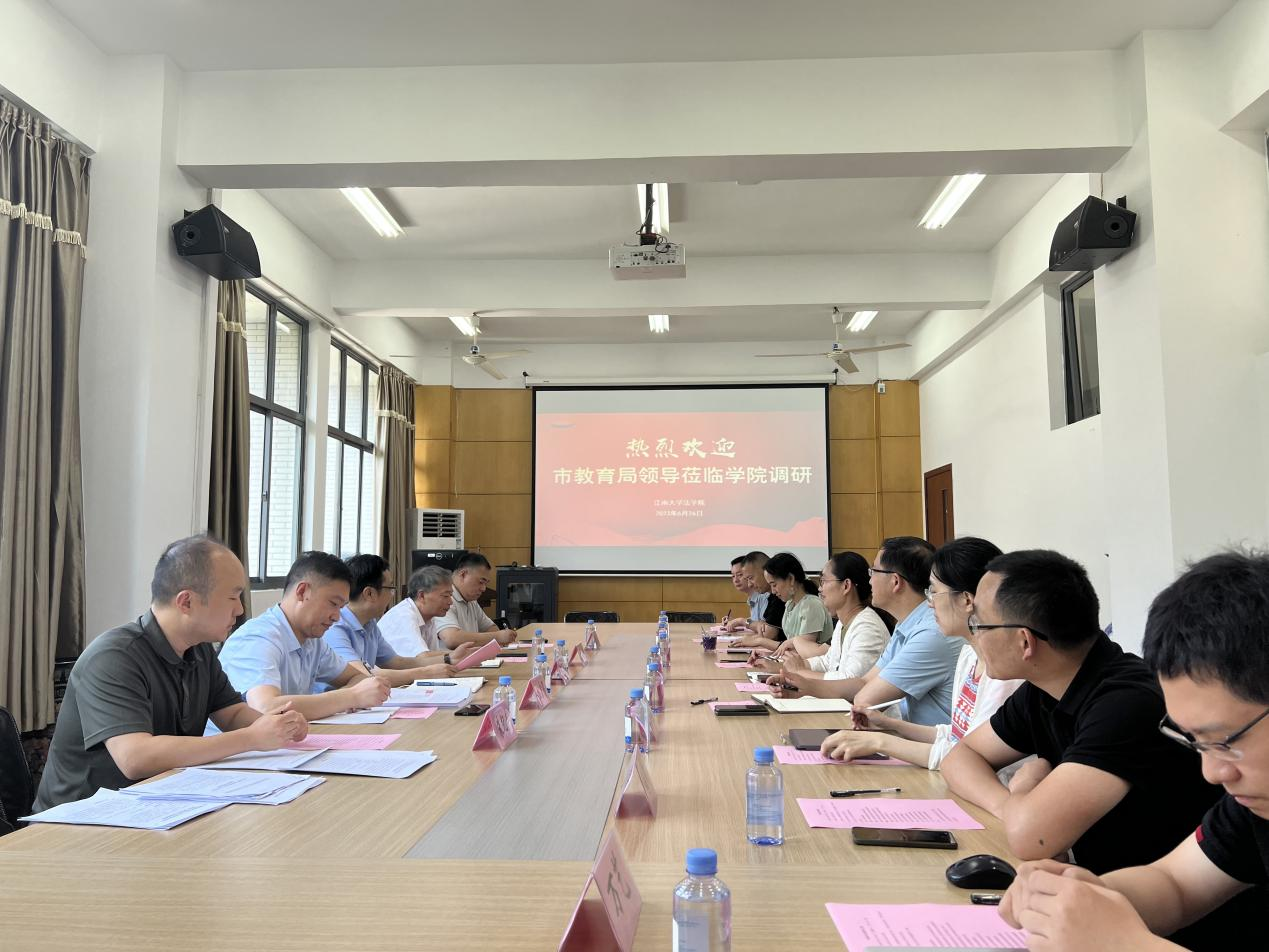 首先,永利23411集团院长王君柏对市教育局长期以来对我院相关工作的支持与协作表示感谢,并重点从招生规模、师资队伍、学科建设、基地建设、科学研究、学生就业发展等方面介绍了学院的办学情况。随后,与会教师围绕此次调研内容“教育领域的依法行政”、“校园法治教育”、“‘学宪法、讲宪法’竞赛指导”等与来宾进行了深入交流。最后,潘鹰副局长对学院的热情接待表示感谢,未来要进一步加强与永利23411集团的沟通联系,通过重点项目合作、法治课题研究、法治宣传讲座等多种方式开展通力合作,共同为我市教育系统的法治建设做出更大贡献。