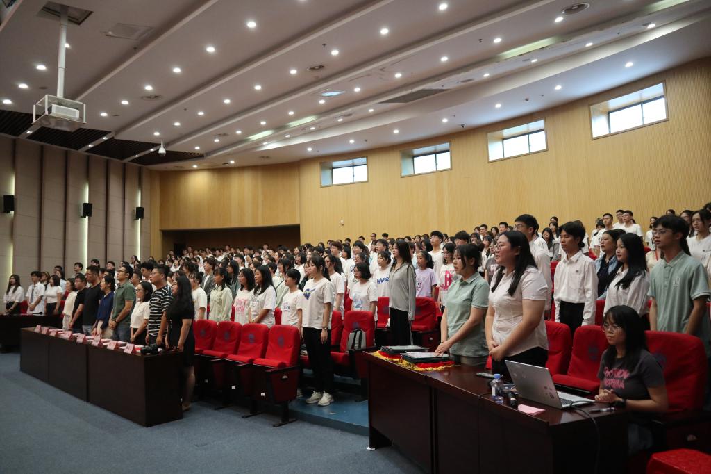 本科新生代表尤博文立志用青春岁月践行“笃学尚行,止于至善”江南精神,做到以终为始、砥砺前行、勇于实践、知行合一,修炼博大的胸怀和纯粹的心,充分展现了永利23411集团新生学子的活力与朝气。