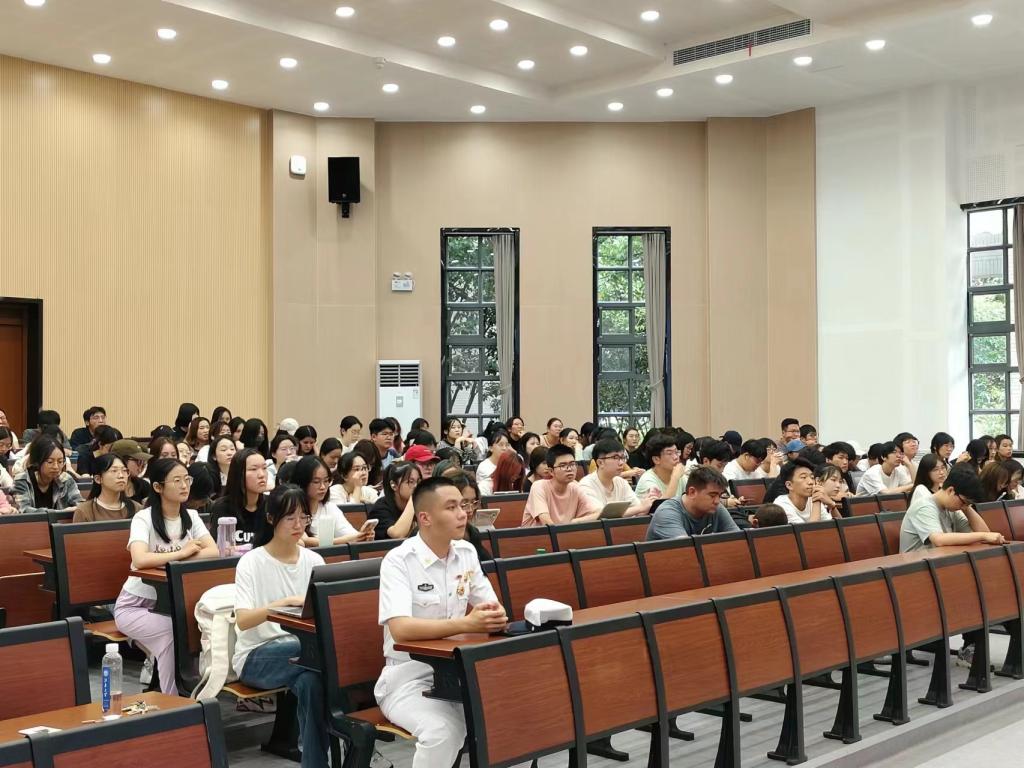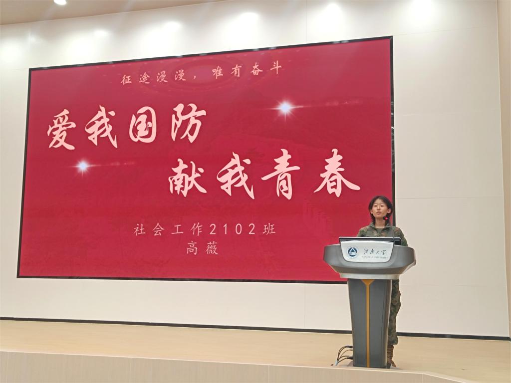 首先,缪晶晶老师总结分析了2022级同学大一学年的综合成绩,并进行学涯规划动员,从精准定向、目标匹配、学涯规划展开,在综合测评、学科竞赛、大创项目等方面提出具体建议,强调应扎实专业基础,拓展社会实践,脚踏实地、不负韶华。接下来,缪晶晶老师介绍2022级军训日程安排与管理制度。军训是学生接受国防教育的基本形式,是培养德智体美劳全面发展人才的重要措施,对提高政治觉悟,激发爱国热情具有重要推动作用。缪晶晶老师重点强调了军训考勤标准与注意事项,鼓励2022级全体同学在军训中培养艰苦奋斗、刻苦耐劳的坚强毅力,养成良好的学风和生活作风。随后,三位退役学生代表刘鑫、高薇、李帅分享自己的军旅经验,鼓励同学们团结一致,配合教官和老师,在思想上高度重视、端正态度,以一个军人的标准要求自己,在训练中磨炼自己、提升自己,使自己终身受益!