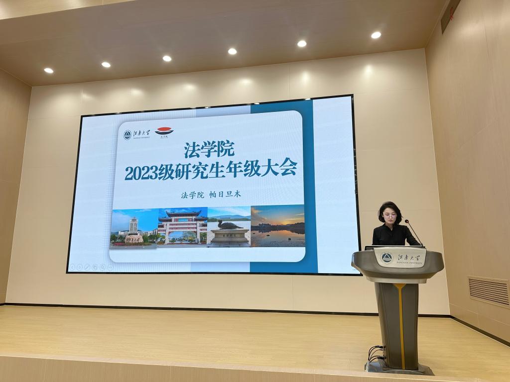 首先,帕日旦木介绍了研究生奖助学金的参评对象、奖励标准、比例以及评定发放要求并对研究生综测情况进行了详细介绍,对专业素质测评、实践素质测评和基本素质测评这三个部分具体展开讲解。她对研究生学科竞赛、项目申报、学术论坛等情况进行展开讲解,着重强调了研究生参与学科竞赛、学生论坛的重要性并鼓励同学们积极参与,提升自己的专业能力和综合素质。同时为同学们提出“自我反思和成长、补充知识和技能、寻求指导和建议、积累实践和经验、学会坚持和耐心”的5个方面的建议。随后,帕老师介绍党员发展流程,鼓励同学们扎实学业基础,提升政治觉悟,为成为一名合格的学生党员随时做好准备。最后,她围绕消防安全、财产安全、防诈骗等安全稳定方面的内容进行提醒,并与对违反校纪校规的行为与处罚方式进行了介绍,着重强调考勤、请假制度,引导同学规范自身行为,杜绝出现违反校纪校规现象。