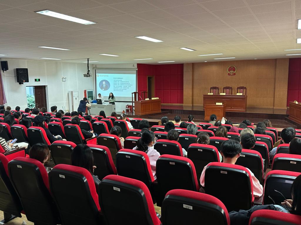 朱华平律师以自身经历为切入点,详细介绍法律行业的就业现状与发展前景,为学生们讲解法律人才就业的机遇与挑战。当下各类法律人才就业岗位丰富多元,如律师、法官、检察官和法务等,朱律师勉励在座同学们要保持谦虚上进的态度,不断扎实自身专业能力,拓展知识边界,积累社会经验,努力成为专业化、复合型的法律人才。此外,朱律师还为同学们讲授笔试、面试求职过程中的干货技巧,包括法律职业资格证书考试、各大律所的管理与培养模式等。现场同学们表示受益匪浅,现场沟通互动热烈。