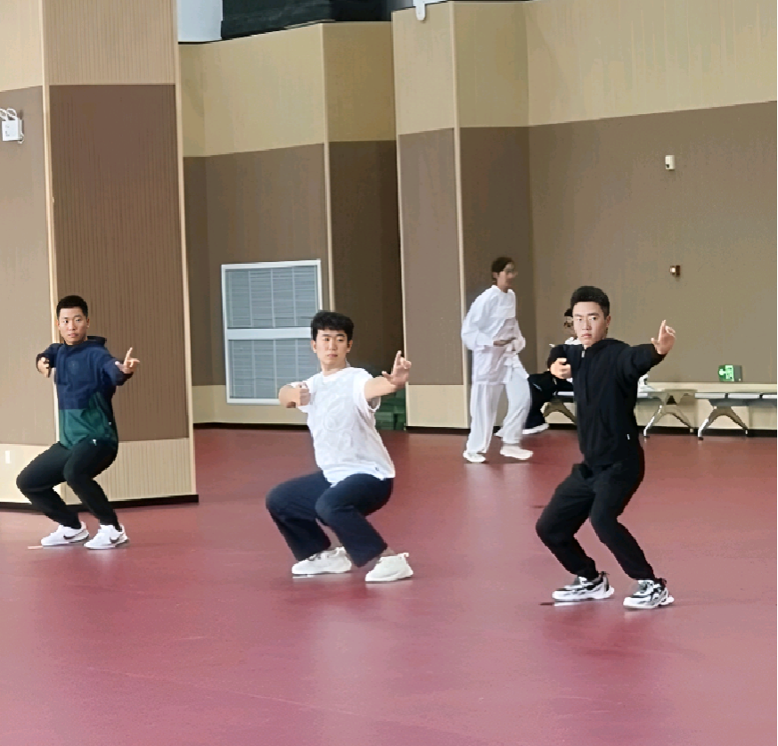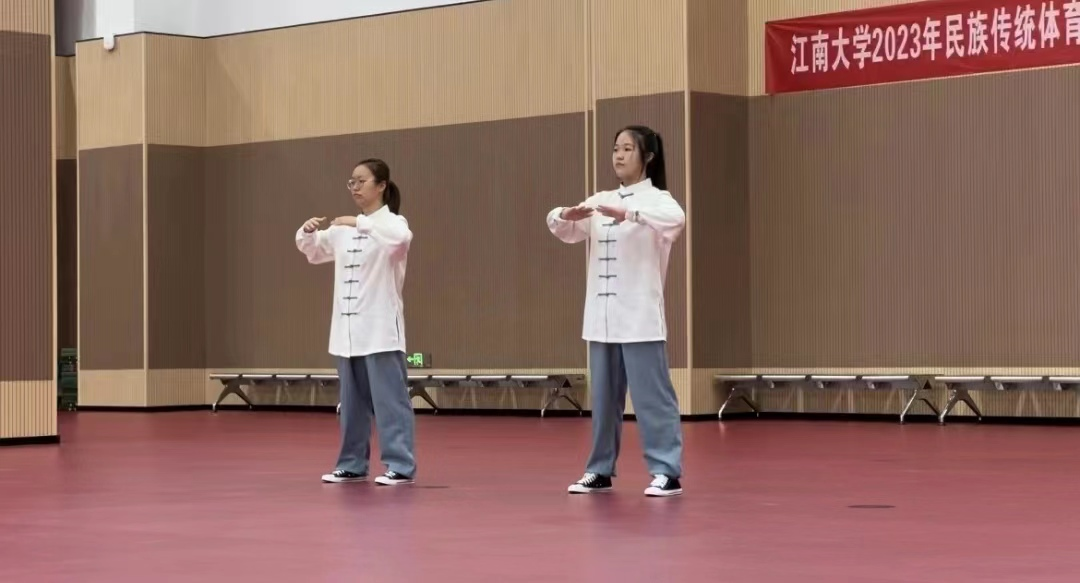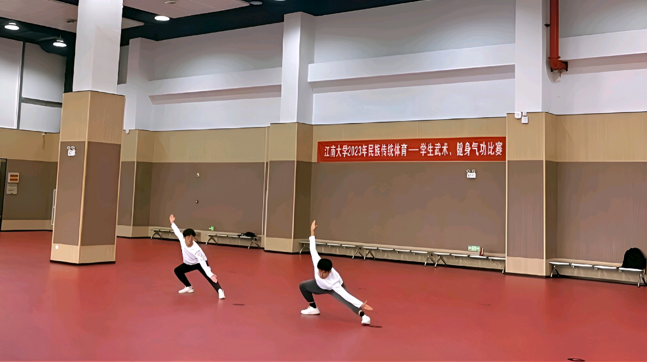 武术和传统导引术是我国传统的健身瑰宝。在单人组比赛中,孙雷宁同学动作行云流水、松柔流畅,一伸即变化,一缩即凝聚,充分体现太极含蓄内敛、以柔克刚的特点,最终获得女子24式太极拳B组第四名的好成绩。八段锦,古人谓之“此八段锦之妙,在于动静相宜,内外兼修,形神并练,堪称‘内外功法之至宝,养生运动之楷模’,郭雨东与高薇两位同学在比赛中动作舒缓而不失力量,最终两人都斩获男、女子八段锦B组第二名的好成绩。双人组比赛包括五禽戏和五步拳。五禽戏是一种古老的健身方法,它通过模仿五种动物的姿势来达到锻炼身体的目的。彭金淇与张雨辰两位同学在比赛中动作舒展、整齐优美,充分模仿出鹤的展翅、振翅、摆尾等一系列动作,最终成功斩获五禽戏比赛中第一名的佳绩。五步拳是武术入门套路,也是武术的基本拳术,历史悠久。比赛中王泓勋和陈成雷两位同学,动作连贯、动静有致,一拳一脚显风范,一招一式皆有道,最终取得五步拳B组第四名的好成绩。