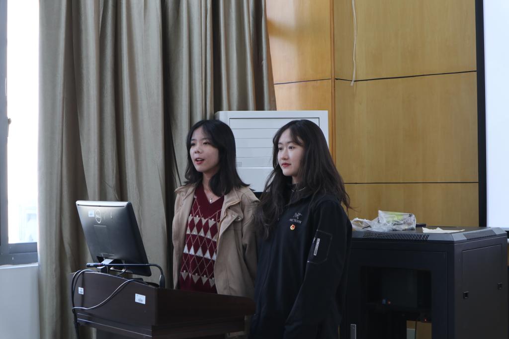 活动缓缓拉开帷幕,第一环节“回望成长,在江南共赴一场闪光青春”,团支部副书记李一诺同学汇报团支部建设情况,5位优秀学生代表分享参与学科竞赛、志愿服务、社会调研的成长感悟,一组组高质量的数据,一幅幅生动精彩的照片,一个个友爱团结的故事...充分展现出团支部乐学善思、笃行实践的青春风采。第二环节“研思共学,从新时代枫桥精神看青年本色”,团支部书记闫嵩涵同学领学团课《“青”力而为,基层有我》。今年是毛泽东同志批示学习推广“枫桥经验”60周年,是习近平总书记指示坚持和发展“枫桥经验”20周年。闫嵩涵带领团员学习新时代“枫桥经验”的内涵,解读基层治理的东方智慧,体会“以人民为中心”的发展思想,发出践行基层使命担当的青春誓言;第三环节“共话未来,以青春之我助力中国之治”,师生代表围绕新时代枫桥精神、基层治理、社会调研、学涯规划等话题开展交流互动,在分享学习与实践感悟中启发思考,一言一语中闪烁着思想光辉。
