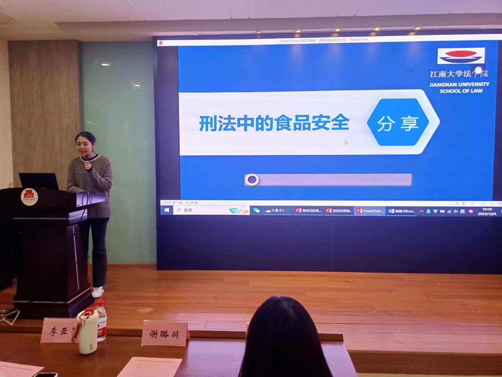 12月4日晚上,“法在身边”普法团队走进食品学院开展“大力弘扬宪法精神,建设社会主义法治文化”主题宪法宣传活动以及“刑法中的食品安全”宪法日专题普法活动。团队为食品学院师生介绍宪法的前世今生,挖掘宪法修正案中的时代故事,为大家提供了一个全新的视角了解宪法。同时,团队介绍和食品领域有关的“生产、销售不符合安全标准食品罪”等刑法知识及案例,生动的讲解使得宪法和法律深入人心。