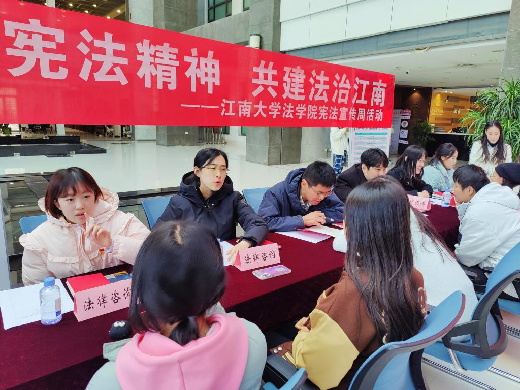 今年12月4日是第十个“国家宪法日”。为了进一步普及宪法知识,增强师生法律意识,永利23411集团近日举办“弘扬宪法精神,共建法治江南”宪法宣传周系列活动。此次活动包括“宪法日”师生公益法律咨询、华庄街道景贤社区《对家庭暴力说“不”》宪法日主题普法情景剧、师生“宪法晨读”、食品学院“刑法中的食品安全”宪法日普法、“宪法卫士行动计划”学生线上学习答题、“学宪法”系列竞赛等六个板块全方位拓展开展,覆盖近13000人。