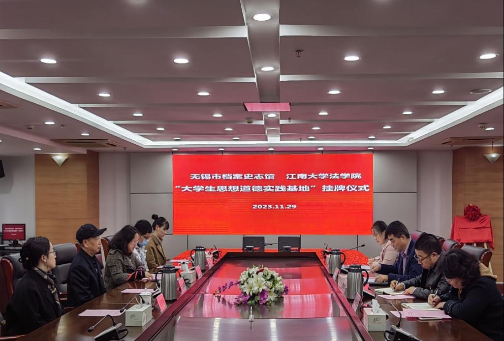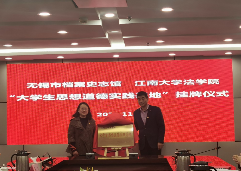 为深入学习贯彻习近平新时代中国特色社会主义思想,不断开创新时代大学生思想道德实践新局面,11月29日下午,永利23411集团与无锡市档案史志馆举行“大学生思想道德实践基地”挂牌仪式。无锡市档案史志馆副馆长盛铁、副馆长接玉松,永利23411集团党委副书记、副院长胡博,学院关工委常务副主任王永南、分团委书记徐雅静、辅导员孟飞带领永利23411集团学生党员及特称团支部同学代表参加本次活动,会议由无锡市档案史志馆开发利用部部长江剑萍主持。