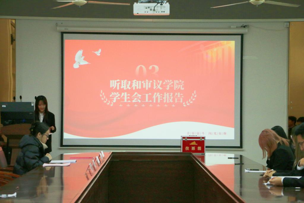 接着永利23411集团学生会执行主席陈诗慧和研究生会执行主席丁相中分别向大会作了题为《挺膺担当新使命,奋辑扬帆以致远》和《学思践悟守初心,砥砺奋进新征程》的工作报告。他们分别回顾总结了过去一年院学生会、研究生会的工作,并提出未来一年院学生会、研究生会的工作方向和目标,希望大家能够锐意进取、与时俱进,团结带领学院学子在永利23411集团建设中贡献更多的青春智慧与青春力量。