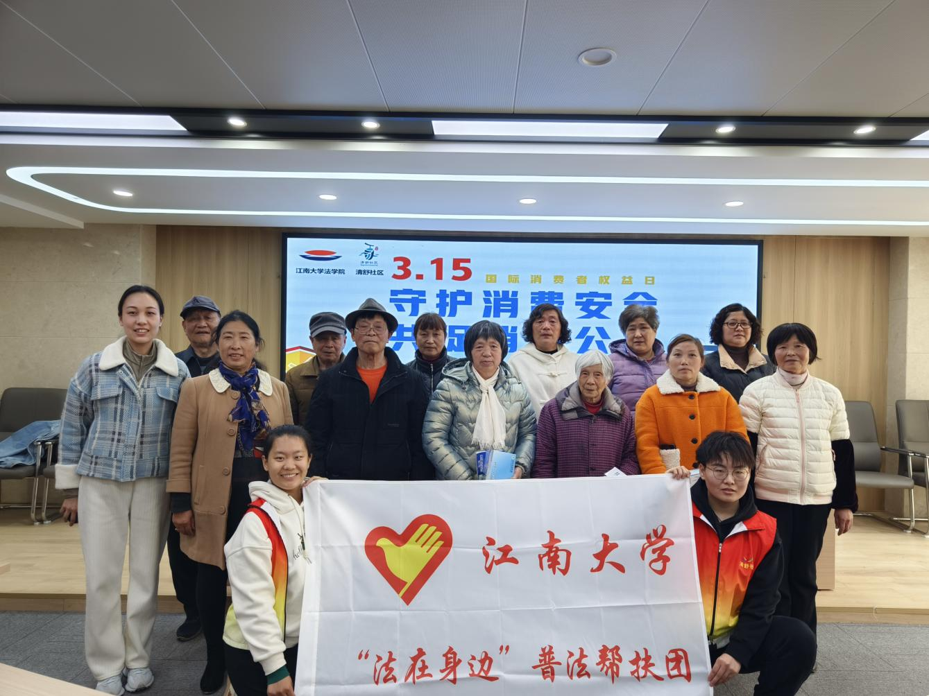 在清舒社区,普法团队基于社区老年人群体开展提防消费诈骗为主要内容的普法宣传活动,使老年人们充分了解自己享有的权利以及维护自身合法权益的途径。“法在身边”普法团队成员结合老年人的日常生活习惯,以老年人喜欢听、用得上的方式针对性的呈现普法内容,为爷爷奶奶们介绍了消费者权益保护日的由来、消费者的基本权利、315曝光平台以及消费诈骗的具体维权方式,同时发放普法手册和现场法律咨询的方式为老年人提高法律服务。老人们踊跃参与互动,现场气氛高涨,增加了活动的参与度和趣味性。