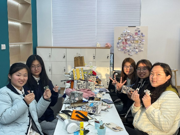 活动现场就“社会工作专业知识盲盒大挑战、“做不被定义的你”炫酷展板秀、“变废为宝”创意手工艺品狂欢”三个活动展开。在“社会工作专业知识盲盒大挑战”环节,参与者纷纷上前抽取盲盒,每个盲盒内都藏有一道与社会工作专业相关的知识题目。大家或思考、或讨论,寻找答案,现场氛围既紧张又充满乐趣。在“做不被定义的你”炫酷展板秀环节,同学们都一一地在留言板上写下心中所想,撕掉展板上世俗的标签,勇敢地对社会刻板印象say“No!”。我们每个人既是参与者,也是主角,用“心”出去,自然有“力”回来。远离焦虑,坚定地爱自己、爱生活、爱社会!在“变废为宝”创意手工艺品狂欢环节,大家利用不同的表现手法,如剪纸、雕刻、绘画等,将协会成员提前向广大师生征集的“垃圾袋”巧手变宝。经过大家巧妙的改造设计,原本看似毫无用处的袋子摇身一变,或是变成了收纳袋,或是变成了纸巾盒,有的则变成了精美的装饰品,重新焕发了旧物的魅力。