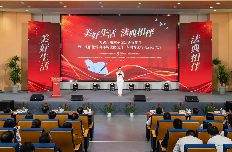 活动现场,首先播放民法典宣传片,旨在提升公众对法典的认识以及对无锡普法工作情况的了解。市法宣办主任、市司法局局长谢海华介绍全市民法典宣传月系列活动及专项普法行动内容。滨湖区委副书记、区长李平致辞,庆祝活动举办。市法宣办副主任、市司法局四级调研员刘肖纯为普法志愿服务团队授旗。滨湖区委常委、宣传部长朱敏为“滨滨”非遗法治剪纸工作室揭牌,提倡传统文化与法治教育相结合。滨湖区委常委、政法委书记章晓明颁发优秀组织奖,表彰法治文化创作贡献者。滨湖区副区长倪俊仿为首批法治观察员颁发聘书,鼓励他们积极履行职责,发光发热。现场还启动了“1名村(居)法律顾问+N名法律明白人”行动,发布相关倡议和“普法City Walk”地图,为市民提供了解法治文化的途径。最后,观众现场观看了“滨滨说法”零距离普法节目,并聆听法治吴歌《好生活法典伴》,将法治教育与地方文化巧妙结合,给人留下深刻印象。