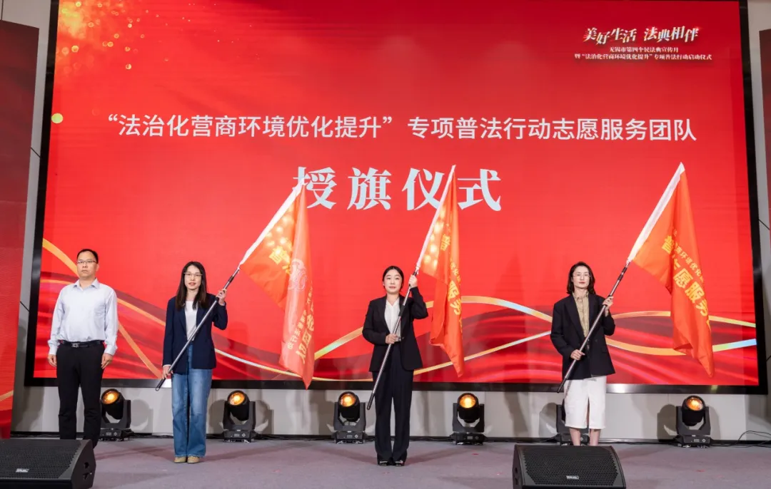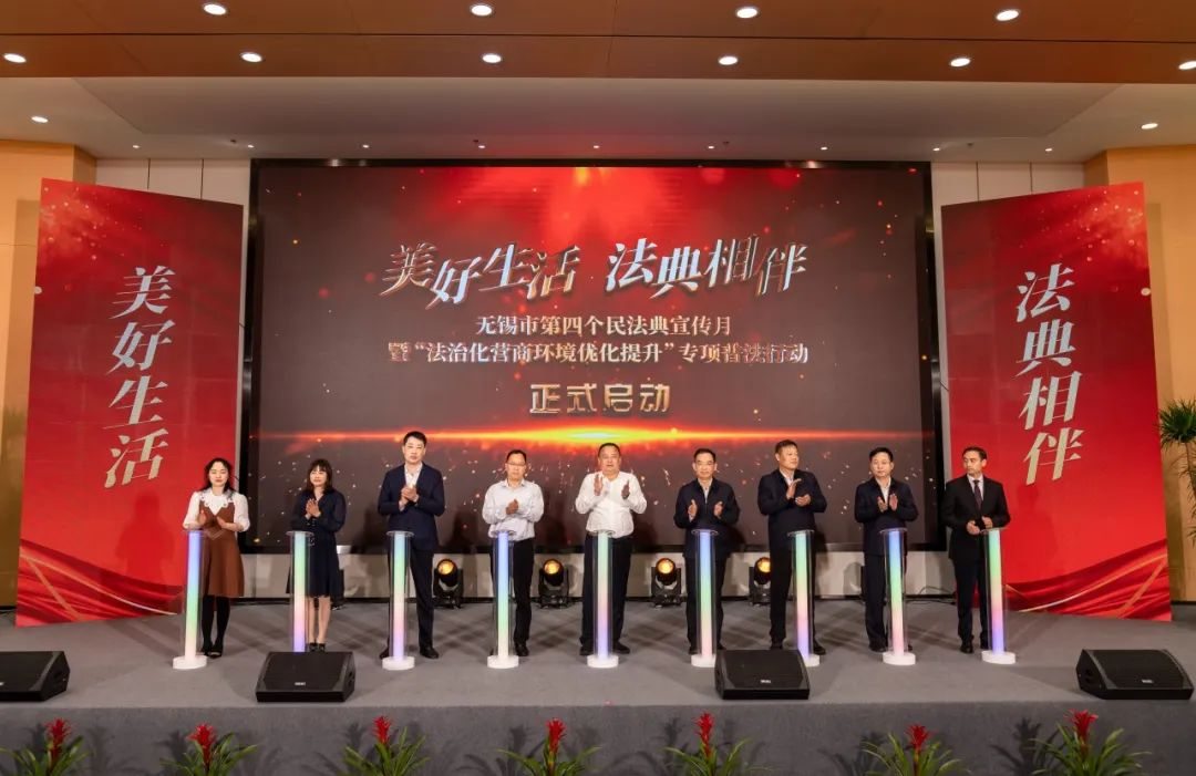 5月11日,由无锡市法宣办、无锡市司法局、滨湖区人民政府联合举办的“美好生活·法典相伴”无锡市第四个民法典宣传月暨“法治化营商环境优化提升”专项普法行动启动仪式在滨湖区知识产权集聚区举行。市、市(县)区部分普法成员单位领导,各市(县)区司法局分管领导,滨湖区各镇(街道)行政主要负责同志、司法所所长,以及企业代表、社区代表、新闻媒体代表共200余人出席。永利23411集团副院长叶敏受邀出席共同启动活动,“法在身边”普法帮扶团队指导老师、辅导员帕日旦木代表永利23411集团“法在身边”普法帮扶团队接受授旗。