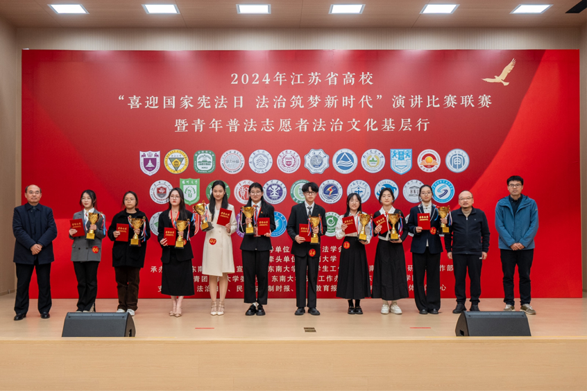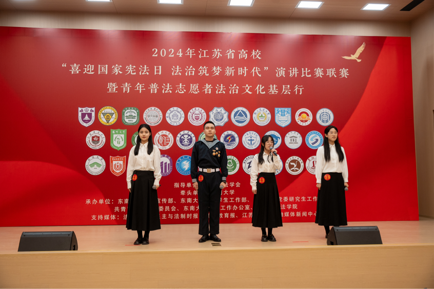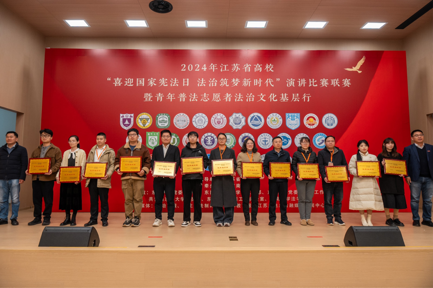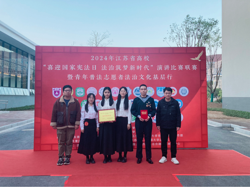 近日,2024年江苏省高校“喜迎国家宪法日 法治筑梦新时代”演讲比赛联赛决赛在东南大学九龙湖校区举行,来自全省入围决赛的17所高校参赛。永利23411集团法学专业2022级刘鑫,2023级周晨曦,2024级谭笑、章子琪代表我校参赛获得三等奖,永利23411集团荣获优秀组织奖。