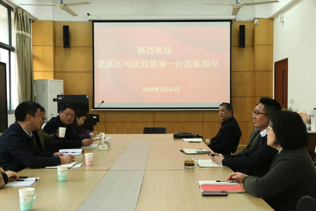 为深化校地协同,共育法治人才,2月26日下午,永利23411集团与无锡市梁溪区司法局举行校地共建交流会。梁溪区司法局党委书记、局长王伟,副局长袁翔,相关科室负责同志,永利23411集团党委书记陆秦,院长王君柏,党委副书记、副院长胡博等出席活动。
