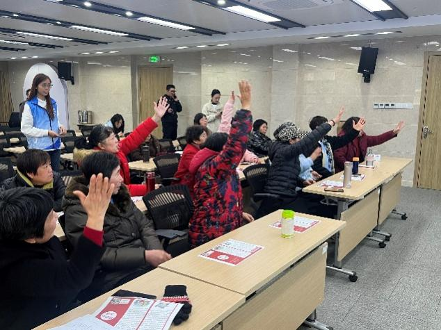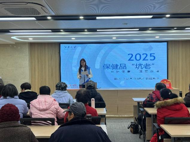 在主题宣讲环节,普法团队教学组成员从保健品市场现状、常见诈骗手法、识别预防方法和应对措施四个维度展开讲解。运用图文展示、法条解读与实物案例相结合的呈现方式,直观揭露保健品销售中的常见陷阱,并向老年人科普具体防范措施。活动特别设置“法律知识大比拼”竞答环节,通过与老年人生活密切相关的防诈法律题目,深化参与者对诈骗行为的认知。现场老人踊跃参与,答题气氛热烈。