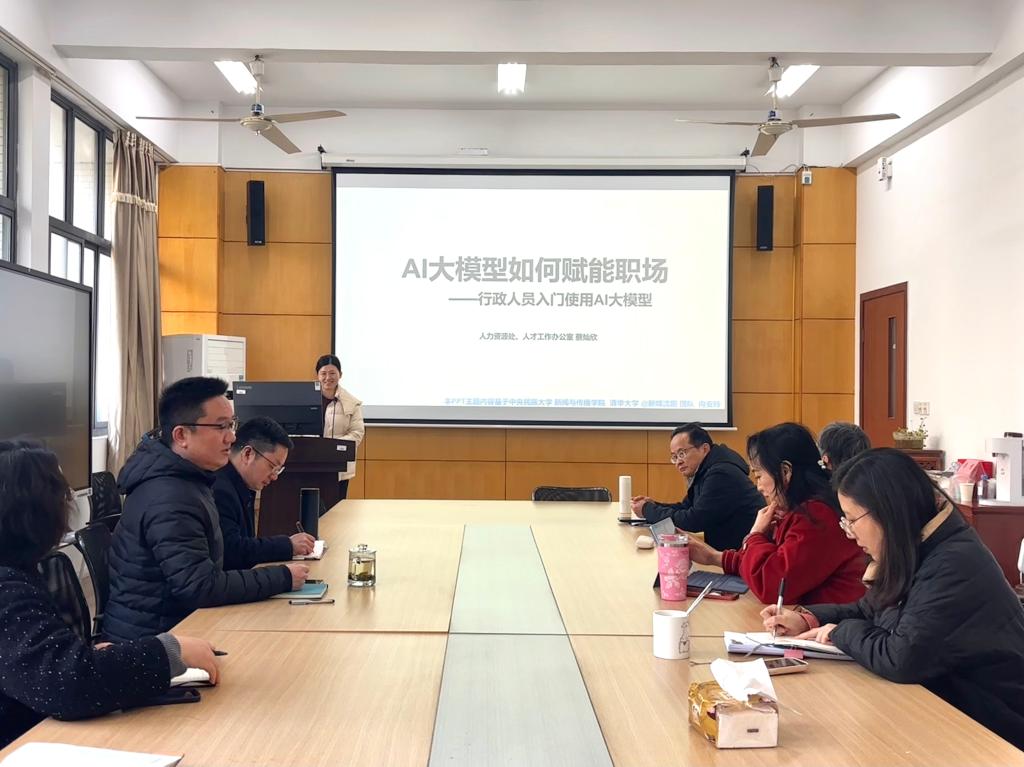 为推进数字化赋能教育教学与管理服务,3月7日上午,永利23411集团举办“工作交流坊”,邀请校人力资源处、人才工作办公室蔡灿欣博士带来“DeepSeek赋能职场—行政人员入门使用AI大模型”主题讲座,全院师生30余人参加了活动。