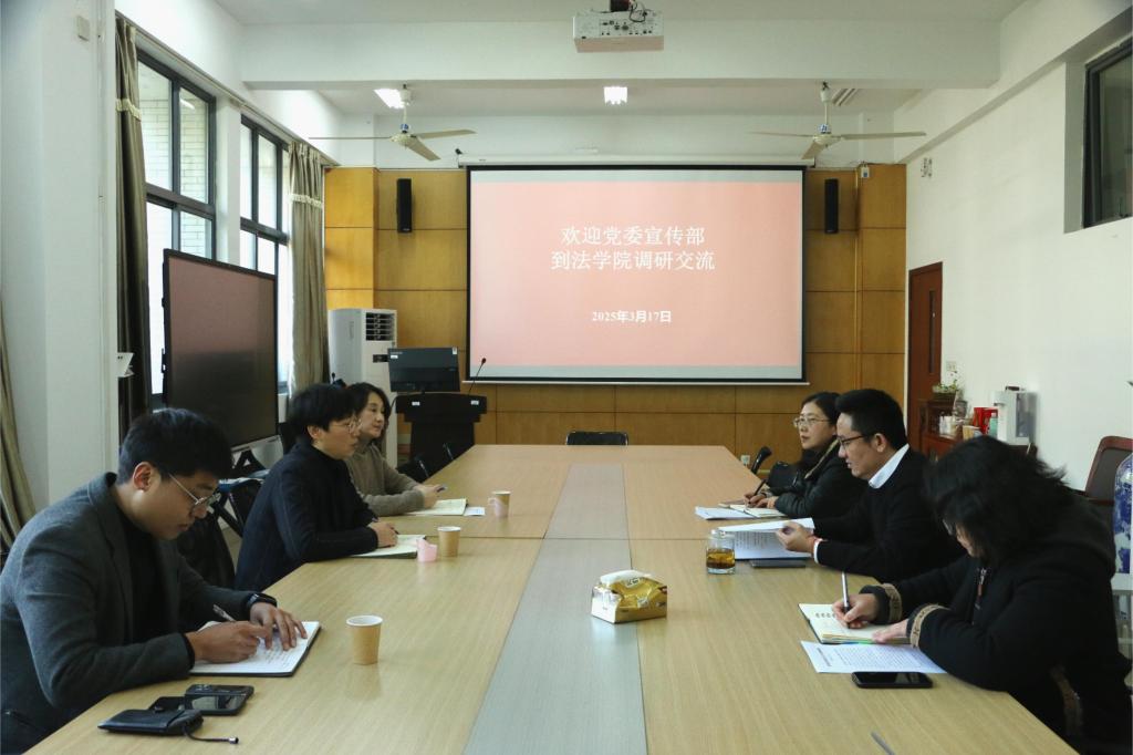 陆秦介绍学院贯彻落实党的二十大精神以及校第五次党代会的重点举措,围绕新时代立德树人工程开展特色党建、学科建设、师德师风、学院精神文明与校园文化等工作进行汇报。胡博就近年来立项永利23411集团“时代新人铸魂工程”精品项目、江苏省高校辅导员名师工作室等汇报,下一步将推进“跨学科融合”深化实践育人体系、辅导员素质能力提升的课程化建设以及互动式思政视频等工作。李佳敏听取汇报后指出,一是要深化政治学习,做好理论研究与阐释,提升政治判断力、领悟力和执行力;二是要巩固新闻宣传与网络舆论管理机制,压实意识形态责任制;三是依托学院特色基地与平台,打好“组合拳”、做好“大文章”,深度参与法治建设和社会治理;四是盘活内外资源,挖掘与培育常态化、长效化和精品化的思政项目。单筱婷提出要健全工作机制、强化舆情管控,守好意识形态“主战场”,同时立足学科特色挖掘亮眼素材,拓展对外宣传的辐射力和影响力。