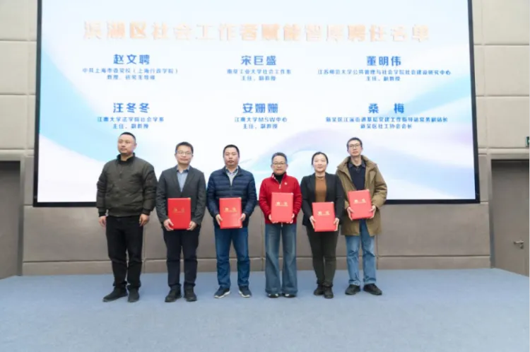 为积极响应第十九个世界社会工作日“加强代际团结,实现持久福祉”主题,进一步提升永利23411集团社会工作专业建设,推动社会工作教育科研高质量发展,3月20日,永利23411集团联动联合滨湖区委社会工作部共同成立滨湖区社会工作学院,永利23411集团院长王君柏,市委社会工作部副部长郑虎,滨湖区委常委、政法委书记章晓明,河埒街道党工委书记徐仕达,滨湖区委社会工作部部长、“两新”工委书记李庆,河埒街道办事处主任丁剑等领导,以及市委社会工作部相关处室负责人、高校专家和社工行业代表出席活动。成立仪式上,同时为5名来自高校的专家和社工行业代表颁发“赋能智库专家代表”聘书。