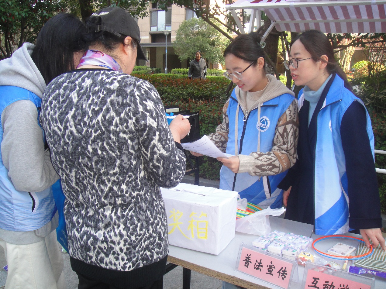 团队成员通过法律问答和互动游戏等形式,帮助社区居民提升法律意识。在法律问答环节,普法团队教学组成员设置了与网络诈骗、人身伤害、邻里纠纷等相关的法律问题,并运用法条解读的方式,引导社区居民学会运用法律知识解决问题。活动专门设置“圈圈有法 一网打尽”趣味普法套圈活动摊位,通过“圈圈有法”小游戏将法律知识与套圈巧妙结合在一起,现场社区居民踊跃参与,答题气氛热烈。