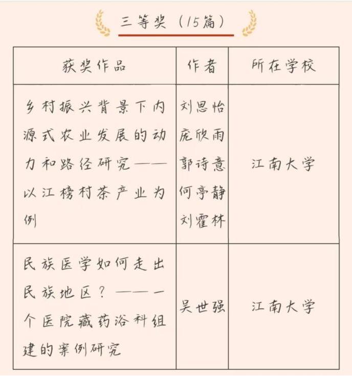 近日,由中国农业大学举办的2025年“农政观察”大学生田野调查作品大赛结果进行公布。此次赛事有来自全国53所高校的250余名本科生参加,我院作品《乡村振兴背景下内源式农业发展的动力和路径研究——以江榜村茶产业为例》《民族医学如何走出民族地区?——一个医院藏药浴科组建的案例研究》荣获三等奖。
