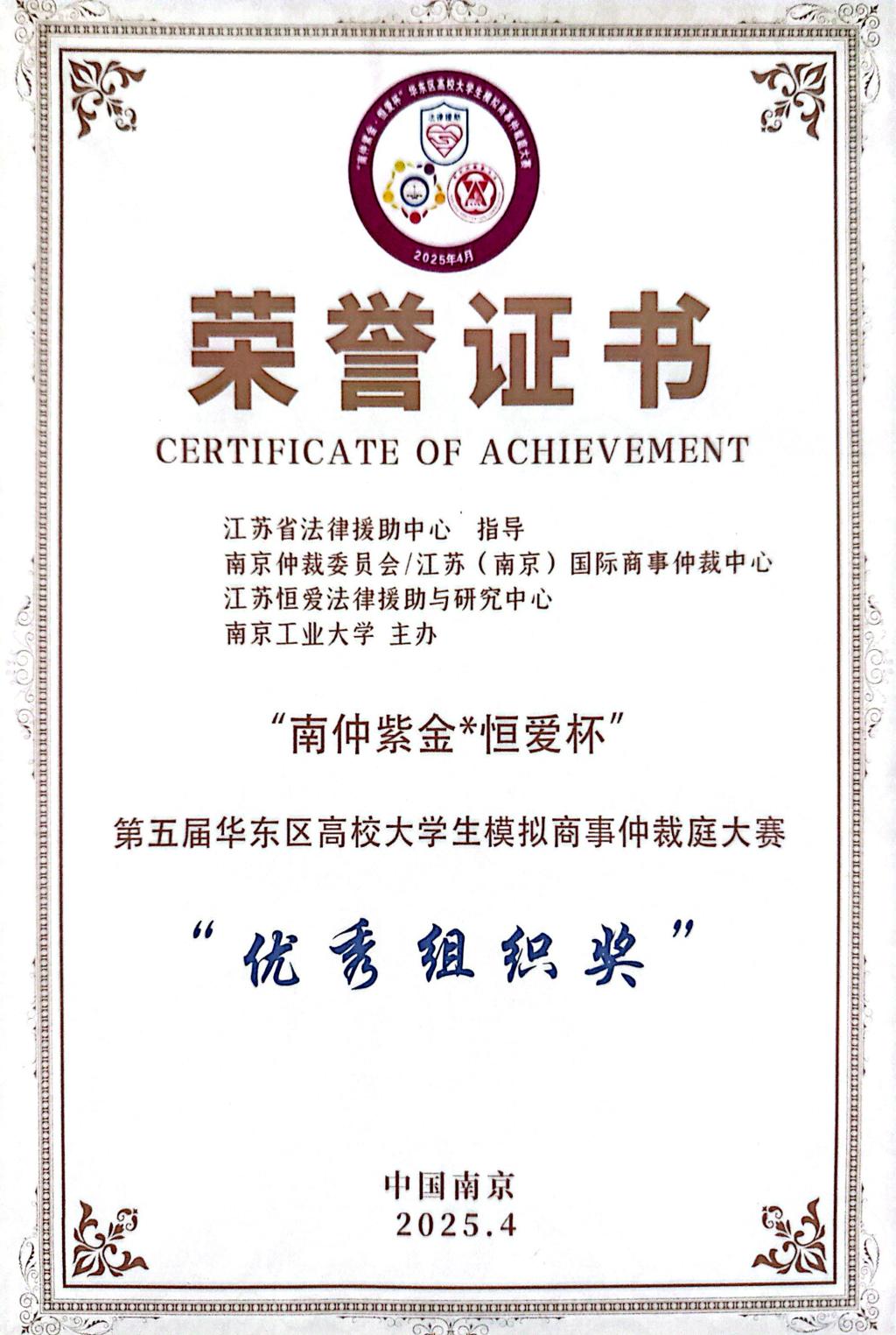 近日,第五届“南仲紫金·恒爱杯”华东区高校大学生模拟商事仲裁庭大赛在南京工业大学举办,来自华东地区的南京大学等22所高校的66支队伍参赛。永利23411集团代表队荣获季军、优秀仲裁文书及优秀组织奖。