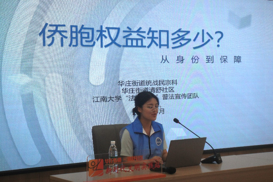 宣讲团队围绕侨胞权益保护核心内容,系统梳理了侨眷身份认定、归侨身份认定、经济权益保障、社会保障及教育权益等关键政策。针对侨胞关心的“海外定居是否影响国内权益”“跨国继承如何操作”等热点问题,结合《中华人民共和国归侨侨眷权益保护法》及地方实施细则,以通俗易懂的语言为居民答疑解惑。宣讲特别强调了公益事业支持与爱心帮扶机制。团队介绍,侨胞可通过参与爱心组织、企业救助座谈会等渠道,获取法律援助、生活帮扶等资源,并呼吁社区搭建侨胞互助平台,形成“以法护侨、以情暖侨”的良好氛围。
