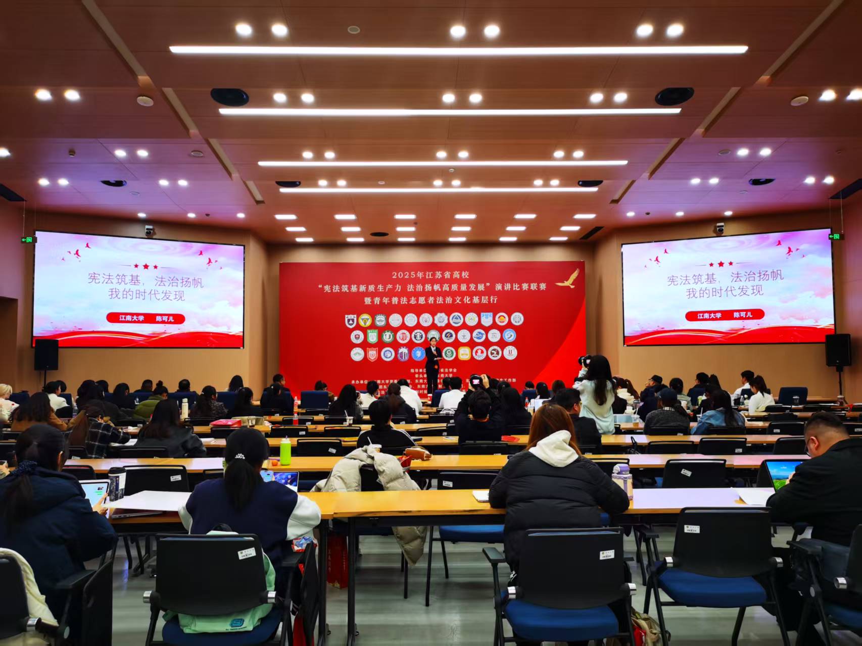 为深入学习贯彻党的二十届四中全会精神,努力培养造就具有坚定法治信仰、强烈家国情怀、扎实法学功底的高素质人才,今年11月江苏省法学会先后组织开展了2025年江苏省高校“宪法筑基新质生产力法治扬帆高质量发展”演讲比赛的复赛与决赛。我院组织校内初赛,并由李耐老师与帕日旦木老师对最终参赛选手进行了赛前指导。我院学子在校际复赛中脱颖而出,成功晋级决赛。在决赛现场,陈可儿围绕“科学立法 严格执法 公正司法 全民守法”的核心主题,探讨了她的时代发现,最终获得省级决赛三等奖。