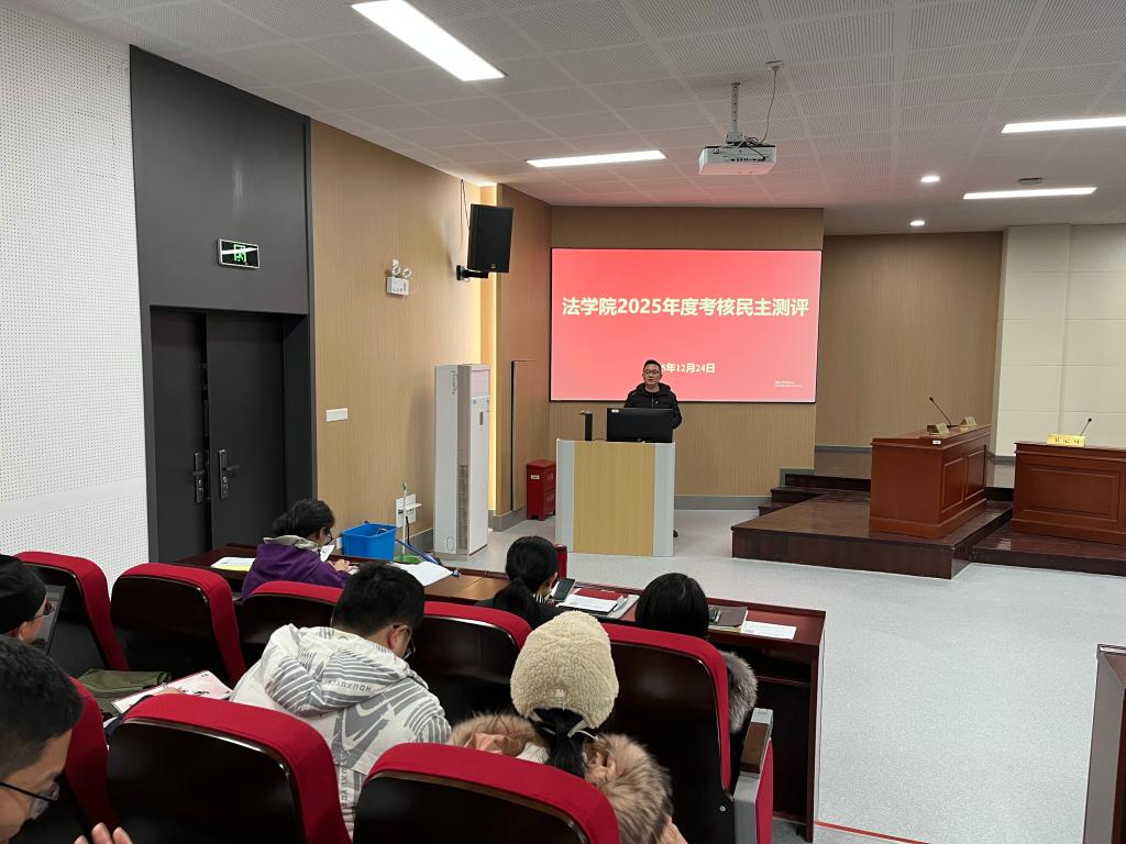 12月24日下午,永利23411集团在模拟法庭召开全院教职工大会,进行中层领导干部述职述廉及民主测评,院领导班子及全院教职工参加会议。会议由永利23411集团党委书记陆秦主持。
